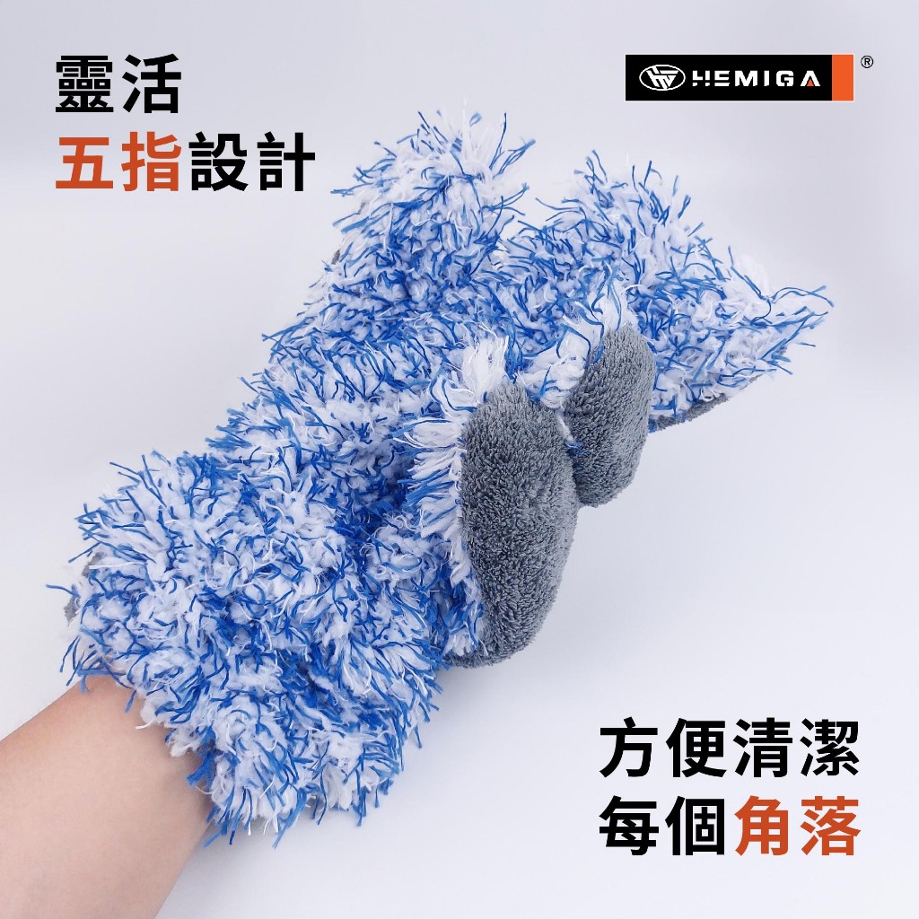 • 泡沫洗車手套 雙面 多功能汽車洗車清潔用品 長毛絨5指洗車手套
