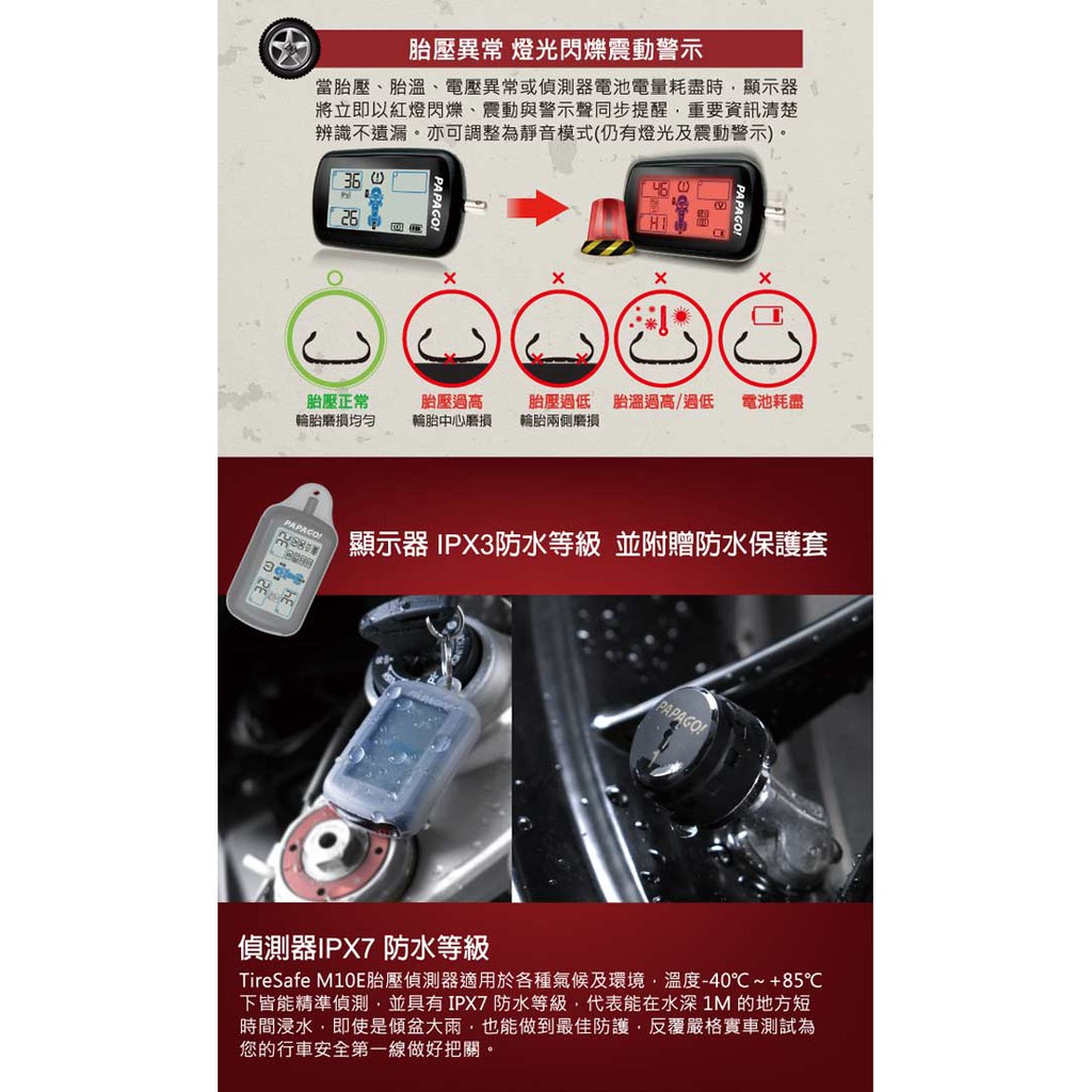 PAPAGO! TireSafe M10E獨立型機車用胎壓偵測器 胎外式(兩年保固)M10ETire Pressure DetectorsPAPAGO品牌旗艦館