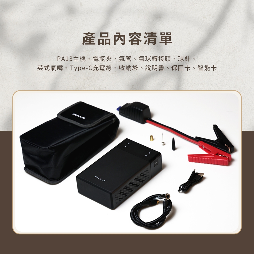 【Philo飛樂】PA13 行車救援王 急速電動打氣機 救車行動電源 13000mAh 打氣+電霸一機兩用 官方原廠直送【Philo飛樂】PA13 行車救援王 急速電動打氣機 救車行動電源 13000mAh 打氣+電霸一機兩用 官方原廠直送OthersPhilo飛樂|arlink雅聯【官方旗艦店】