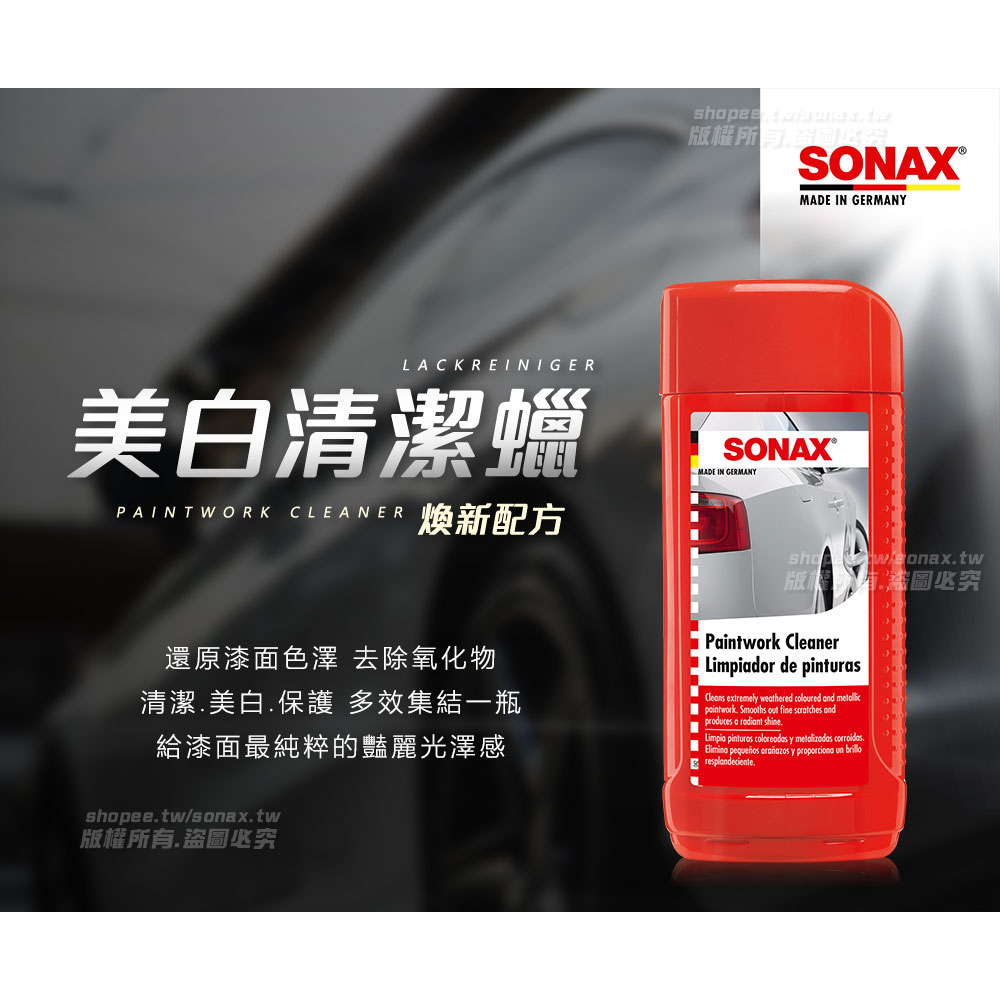 SONAX 美白清潔蠟 除水痕水垢 黑刁底 / 氧化物清潔 / 美白蠟 / 多用途 / 煥新清潔蠟單瓶 送 纖維布+擦拭海綿|限時特賣(單入)|直播優惠下單區|限時優惠Wash & WaxesSONAX 歐洲第一汽車鍍膜 中性洗車藥劑 棕櫚蠟 洗車精 汽車美容 台灣總代理