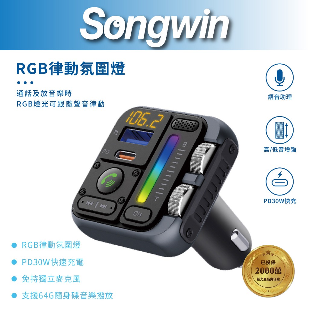 【Songwin】CAR5000 藍芽車用播放器PD30W車用藍芽播放器[呼吸燈][尚之宇旗艦館]【Songwin】CAR5000 藍芽車用播放器PD30W車用藍芽播放器[呼吸燈][尚之宇旗艦館]USB Chargers, FM & Bluetooth TransmittersSONGWIN 旗艦館