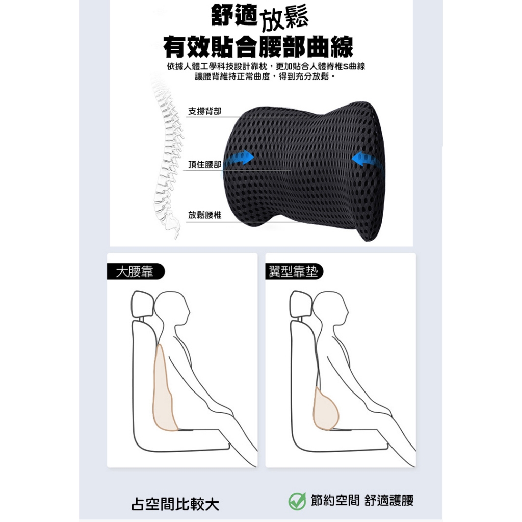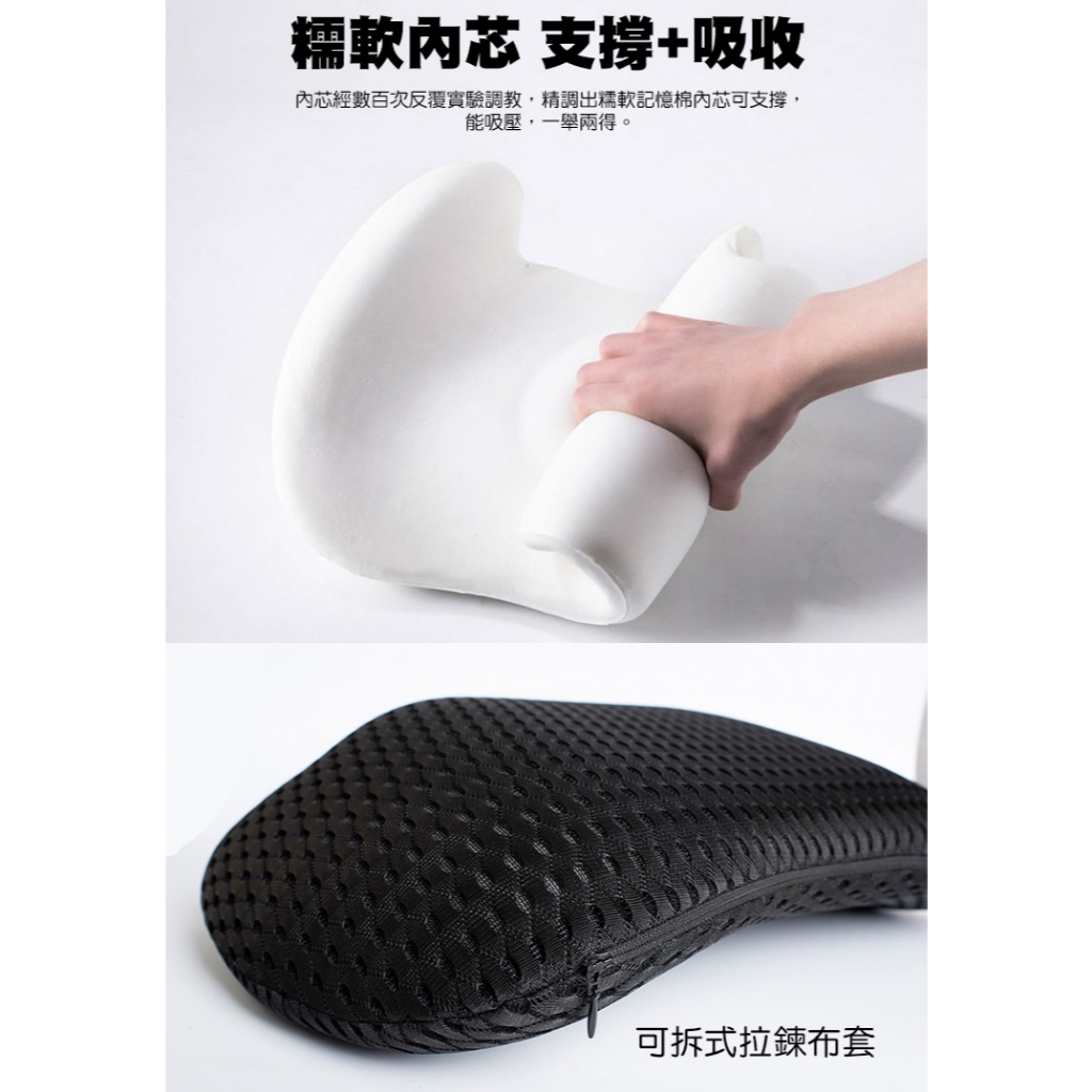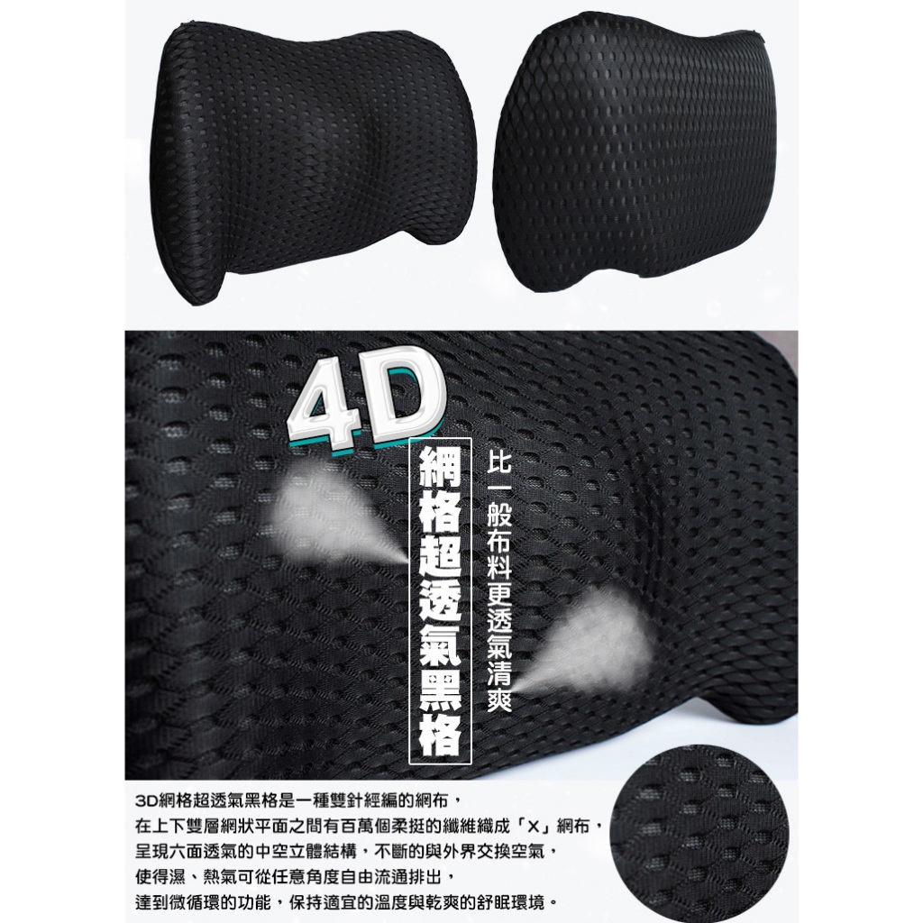 QIDINA 4D質感網格透氣記憶棉車用辦公靠墊尾椎枕-C枕C-灰白色|枕C-黑色Seat Headrests & Back SupportsQIDINA