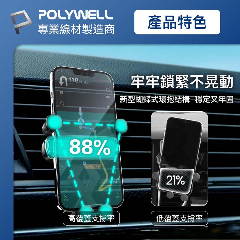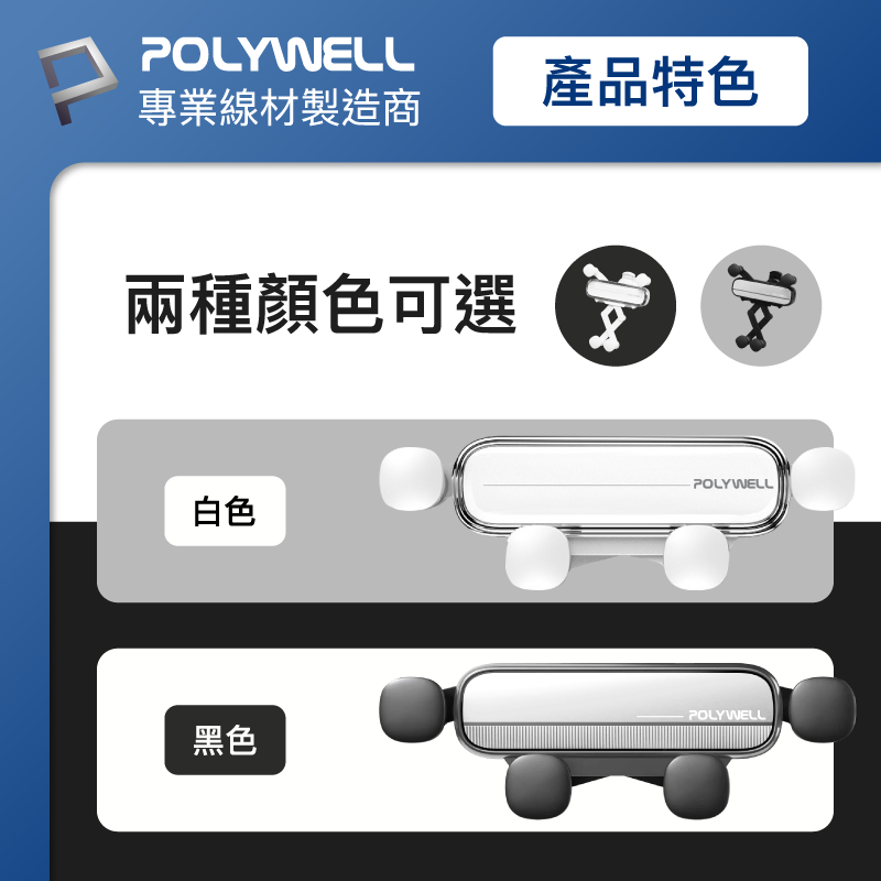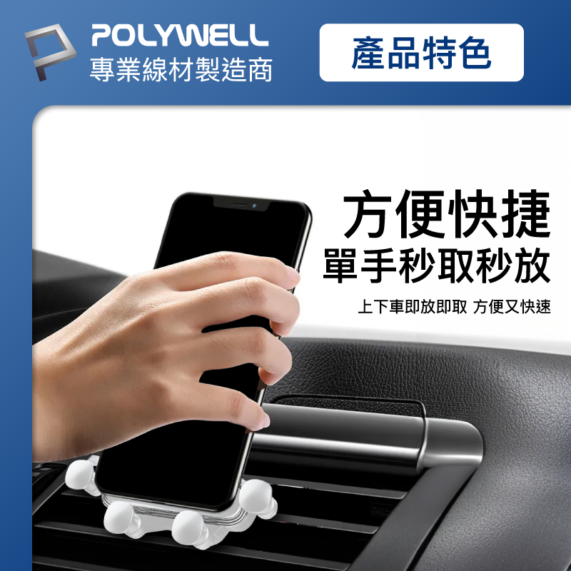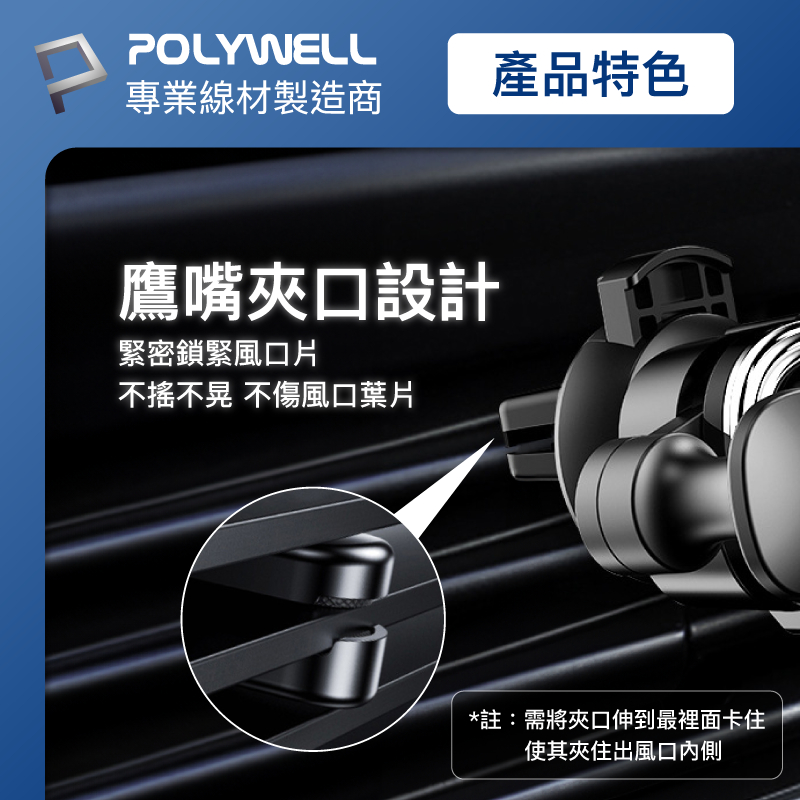 POLYWELL 車用手機重力支架 自動開合 可單手操作 鷹嘴式出風口夾 適用iPhone 安卓手機 寶利威爾 台灣現貨白色|黑色Phone HoldersPOLYWELL寶利威爾官方旗艦店