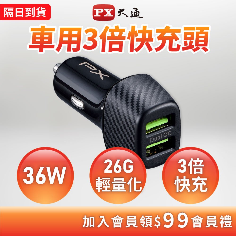 PX 大通 車充 車用USB電源供應器 PCC-3620 QC快充 USB-A 兩孔PX 大通 車充 車用USB電源供應器 PCC-3620 QC快充 USB-A 兩孔USB Chargers, FM & Bluetooth TransmittersPX大通電子官方行車旗艦館