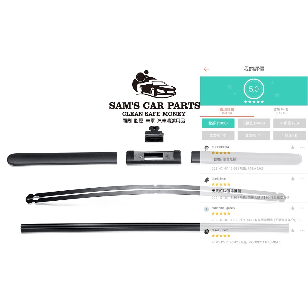 適用於前+後TIGUAN專用軟骨雨刷 自有工廠 非一般大陸貨MK1 前19mm寬卡榫S512|MK2 前16mm窄卡榫S305|MK1後雨刷B113滑蓋13|MK2後雨刷B132扣13|前後合購優惠(請備註年份)Windshield Wipers & WashersSAM’S CAR PARTS 寶逸得實業