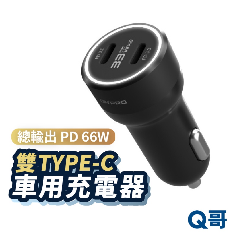 ONPRO GT-P66CC 66W 雙TypeC車用充電器 雙孔快充 車充快充 PD66W 點煙器 車充 ON12車神黑雙typeCUSB Chargers, FM & Bluetooth TransmittersQ哥 旗艦商城|最專業的保護貼手機配件