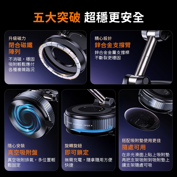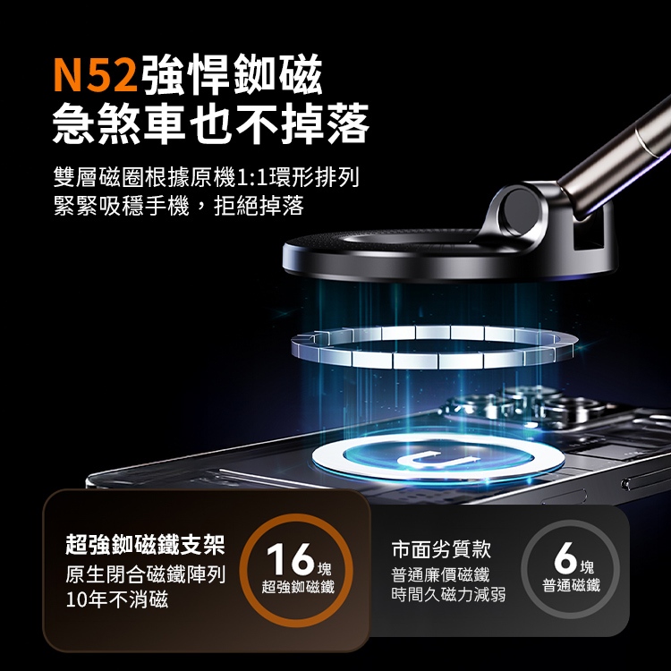 SHOWHAN 新款吸盤強磁雙圈N52磁吸車載折疊旋轉支架手機支架K007 手動真空吸附手機架 台灣現貨 隔日店到店黑色|白色|專用收納包Phone HoldersSHOWHAN手機周邊生活用品旗艦店