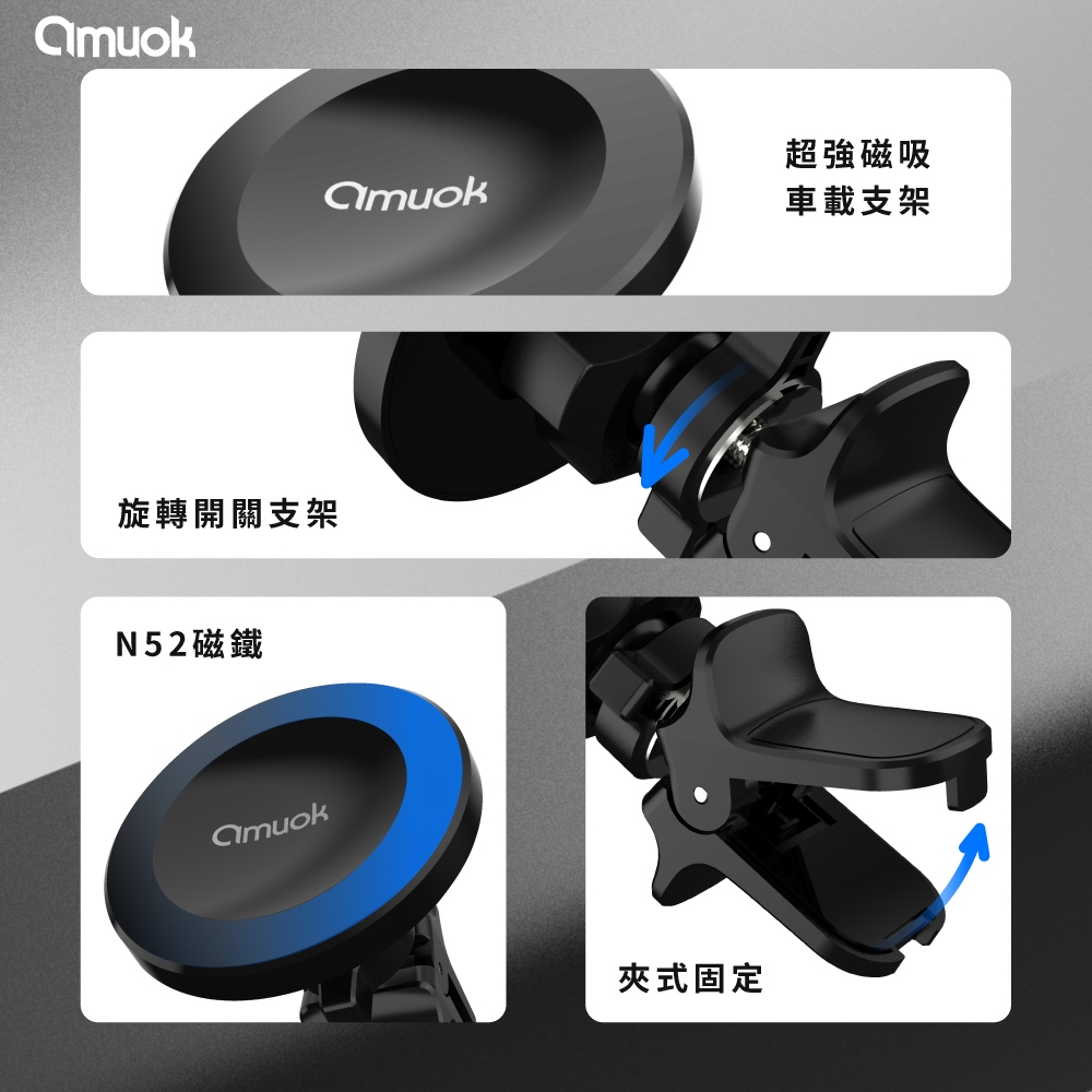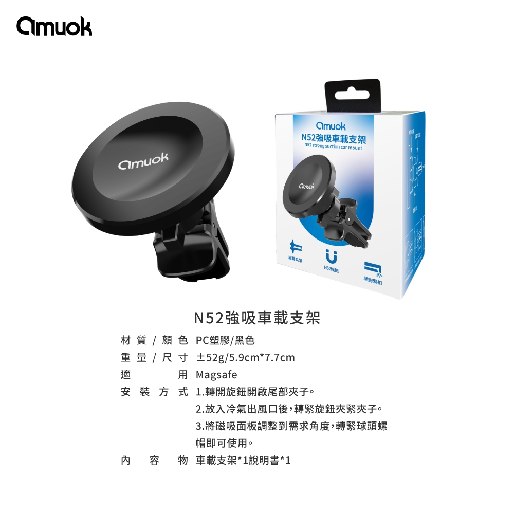 【amuok】N52強吸車載支架 出風口支架 手機支架 車用支架 車載支架 車架 MagSafe 磁吸手機架 磁吸車架黑色Phone HoldersNawies 手機配件 | 代理 倍思 / Lisen / amuok