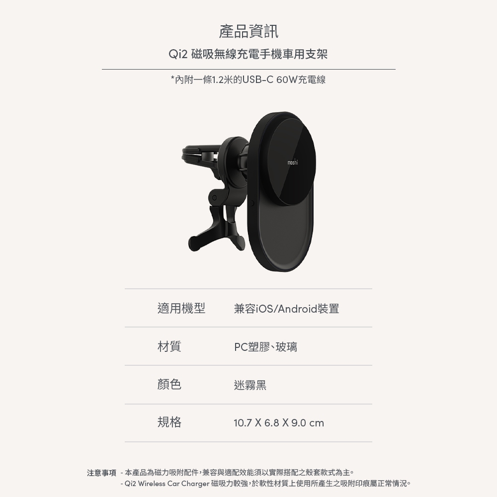 Moshi Qi2 磁吸無線充電手機車用支架單一規格Phone Holdersmoshi 官方旗艦店
