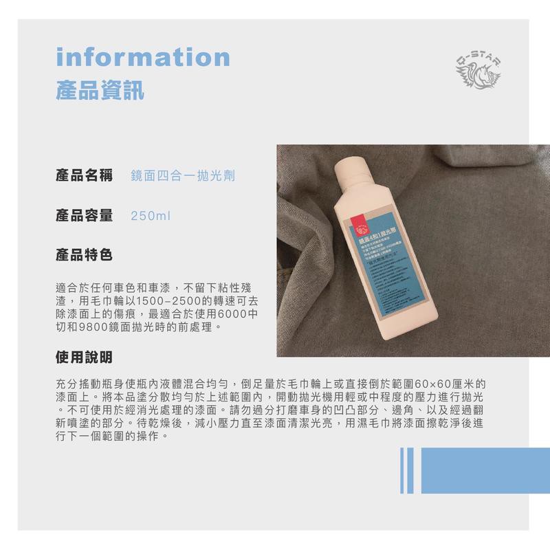 Q-STAR 汽車美容研磨系列 鏡面四合一拋光劑 220ml 鏡面拋光 汽車拋光研磨劑220ml,S|120ml,SPolish, Coating & SealantsQ-STAR皇后之鑽有限公司 車蠟 棕梠蠟 汽車美容 洗車用品 鍍膜 洗車打蠟