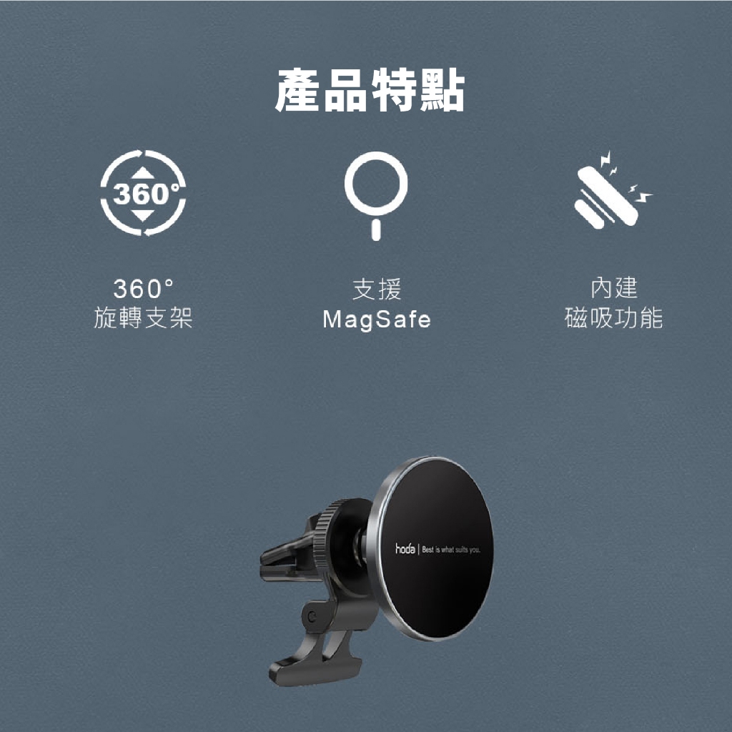 hoda 鋁合金車用出風口磁吸手機支架 MagSafe 磁吸 車用支架 手機支架 導航架 手機座 支架 HOD032鈦黑色|鈦金色Phone HoldersQ哥 旗艦商城|最專業的保護貼手機配件