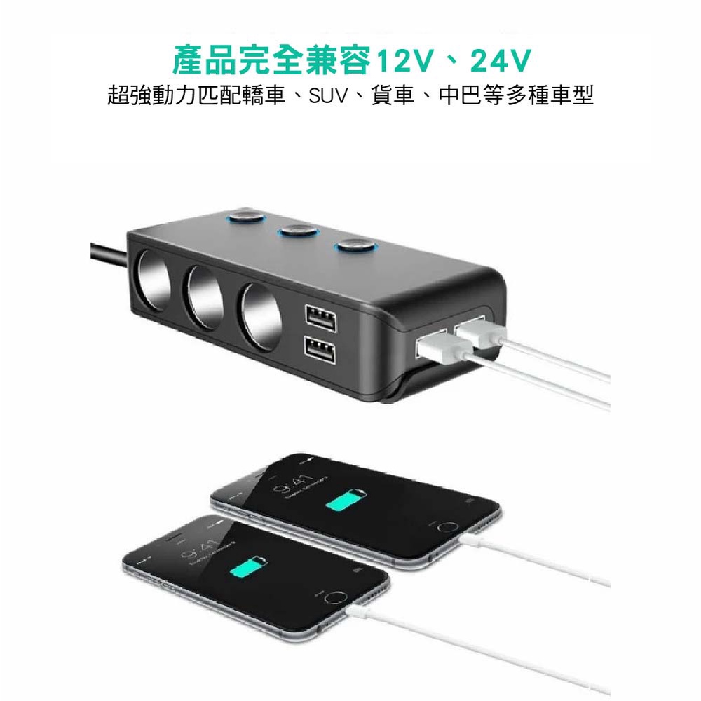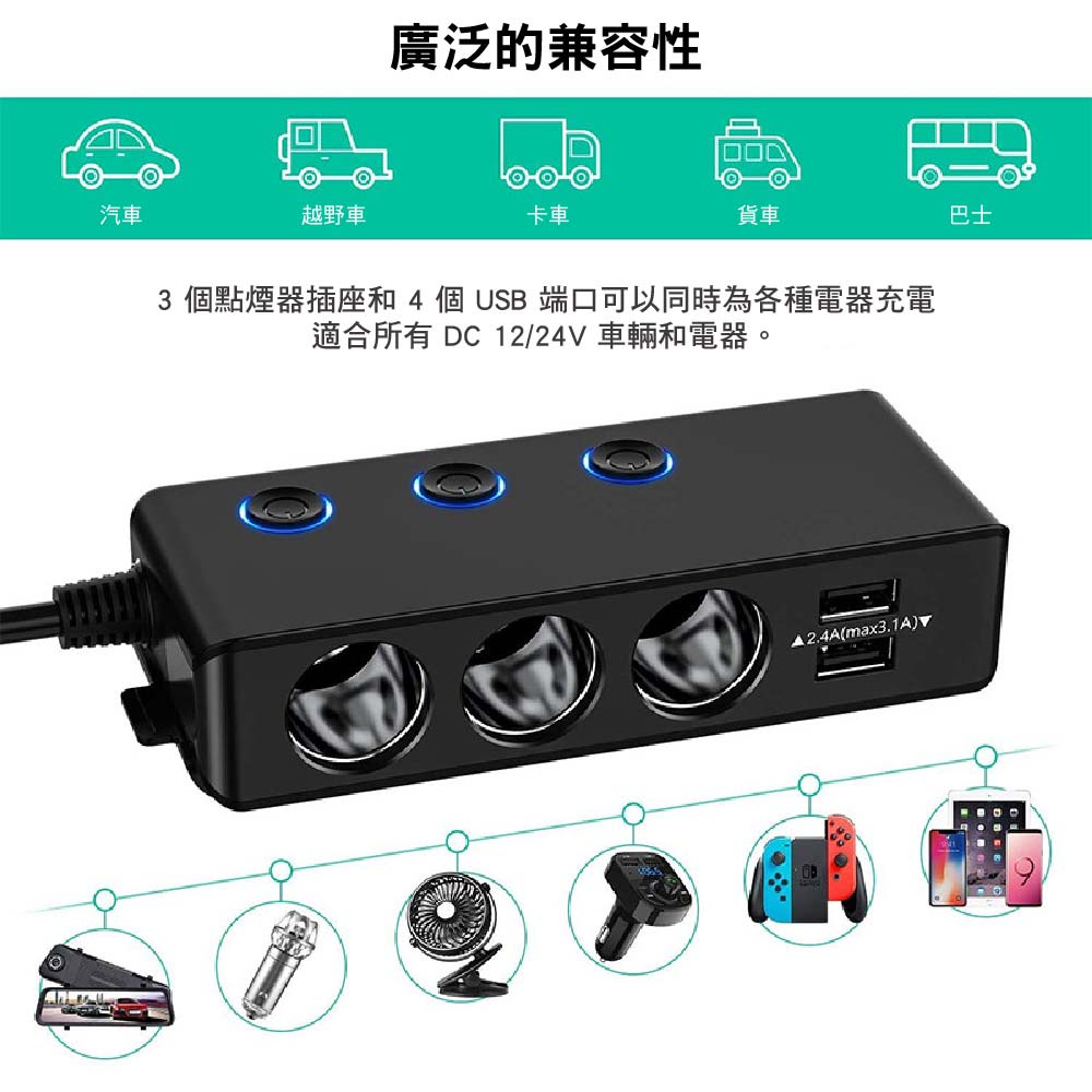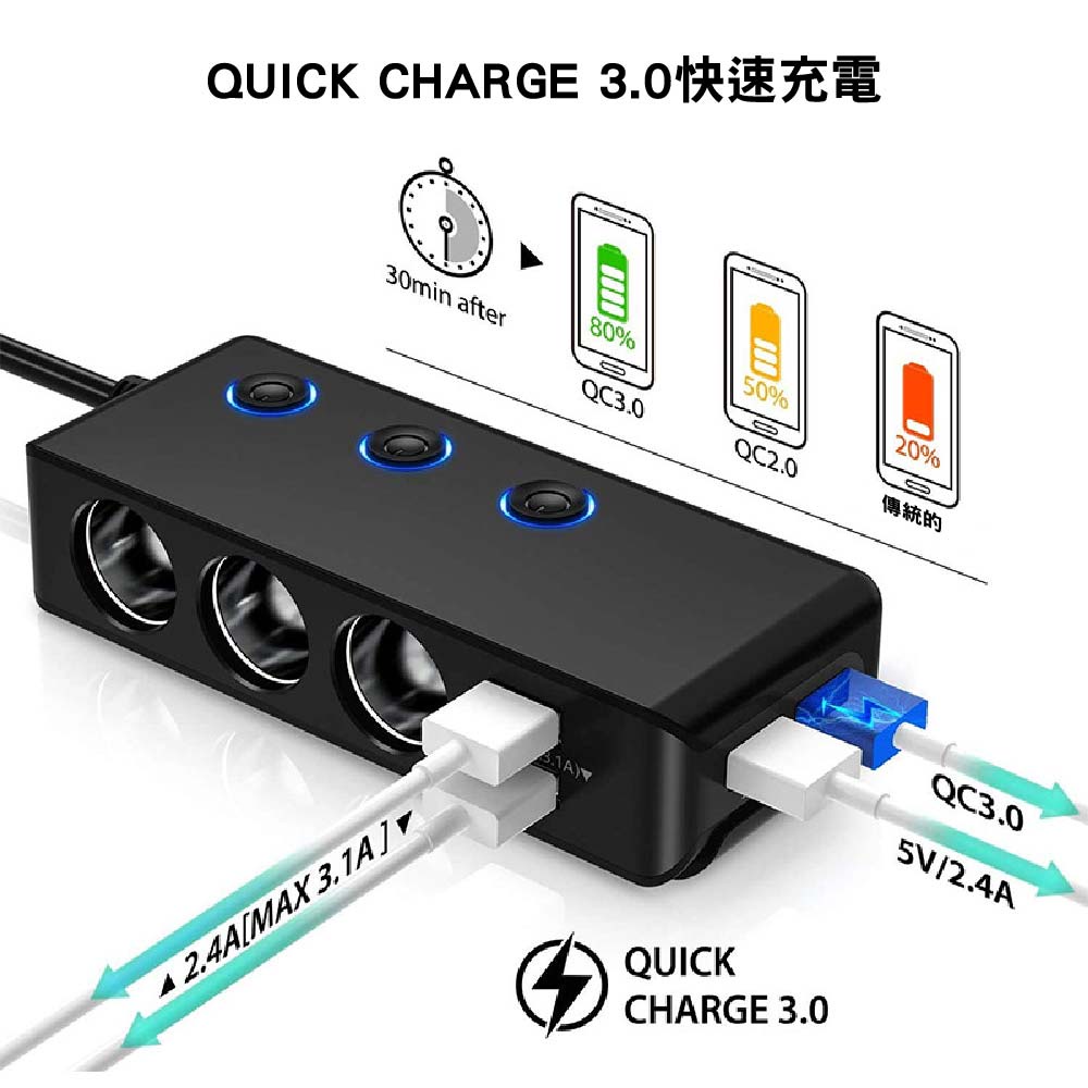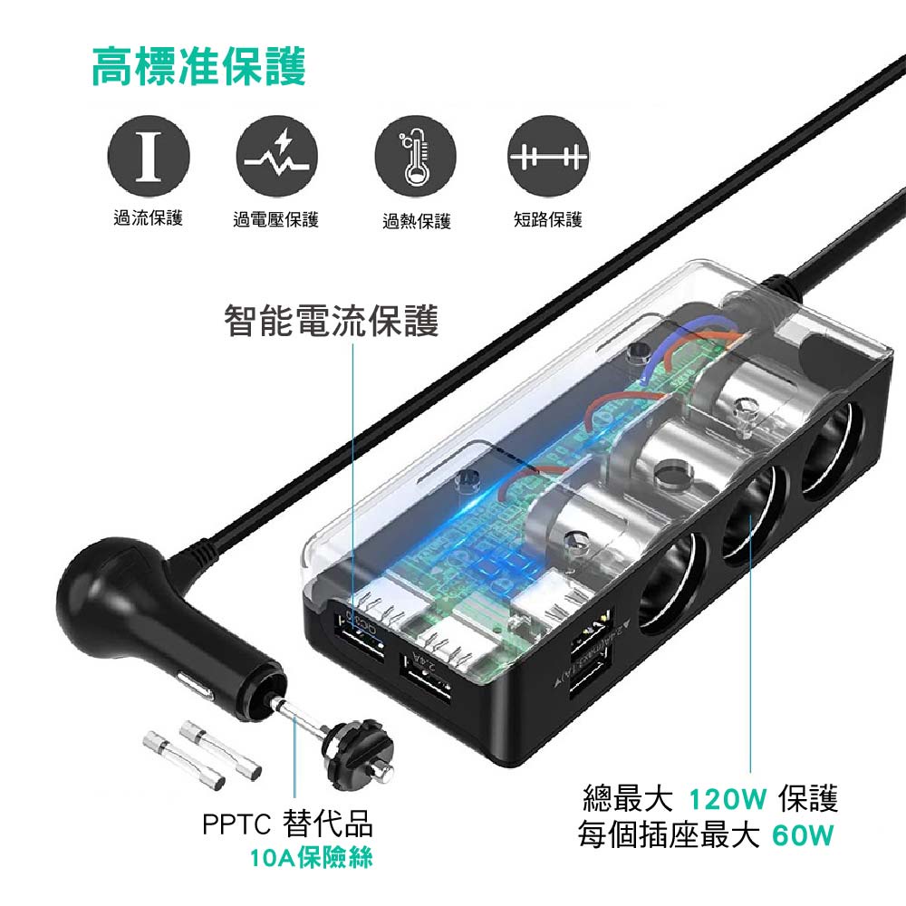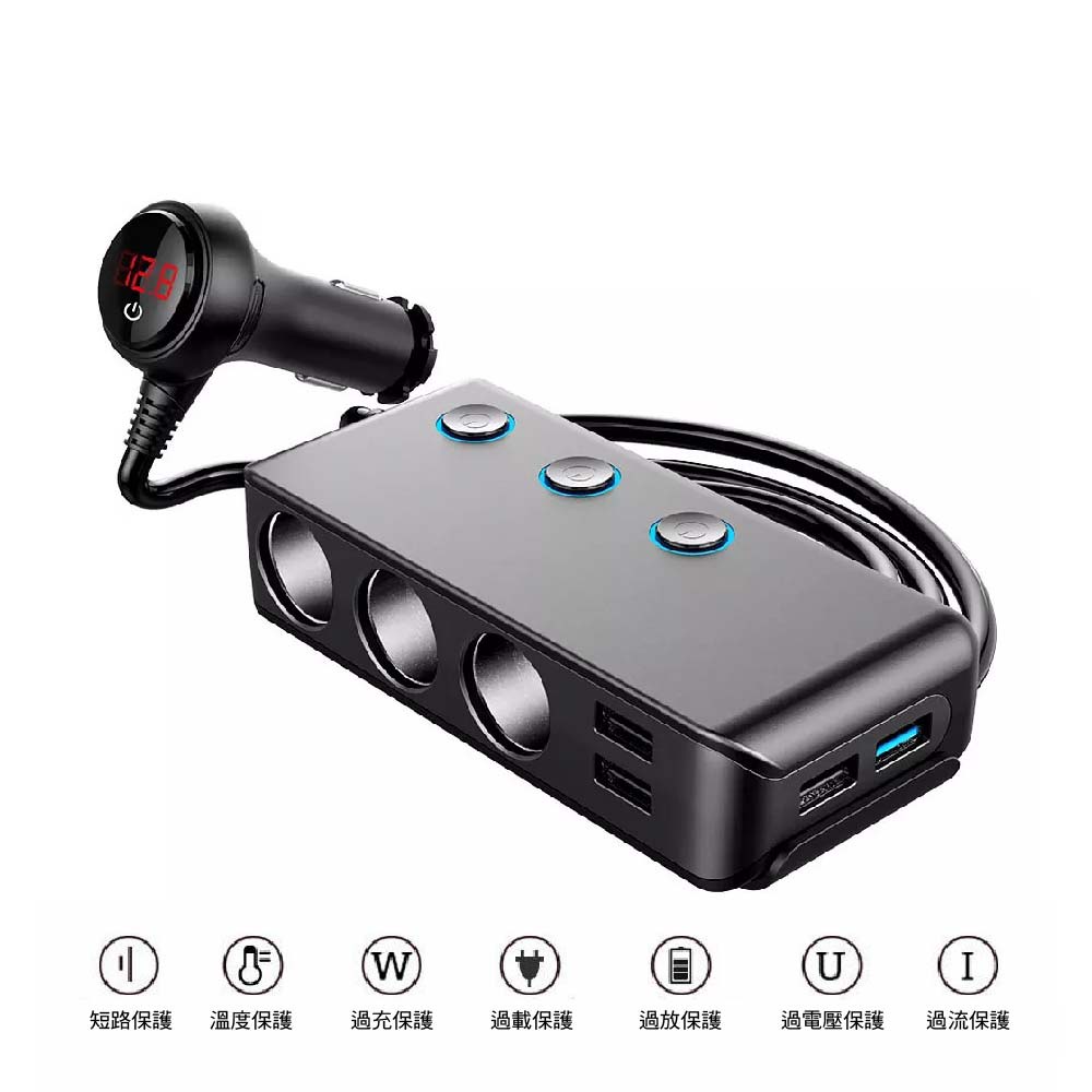 車用點菸器 一拖三|線長90cm|SY-TR30|4USB/獨立開關/QC3.0快充/max120W/車載充電器4孔USB|3孔USB+PDUSB Chargers, FM & Bluetooth TransmittersSUNYES 官方旗艦店