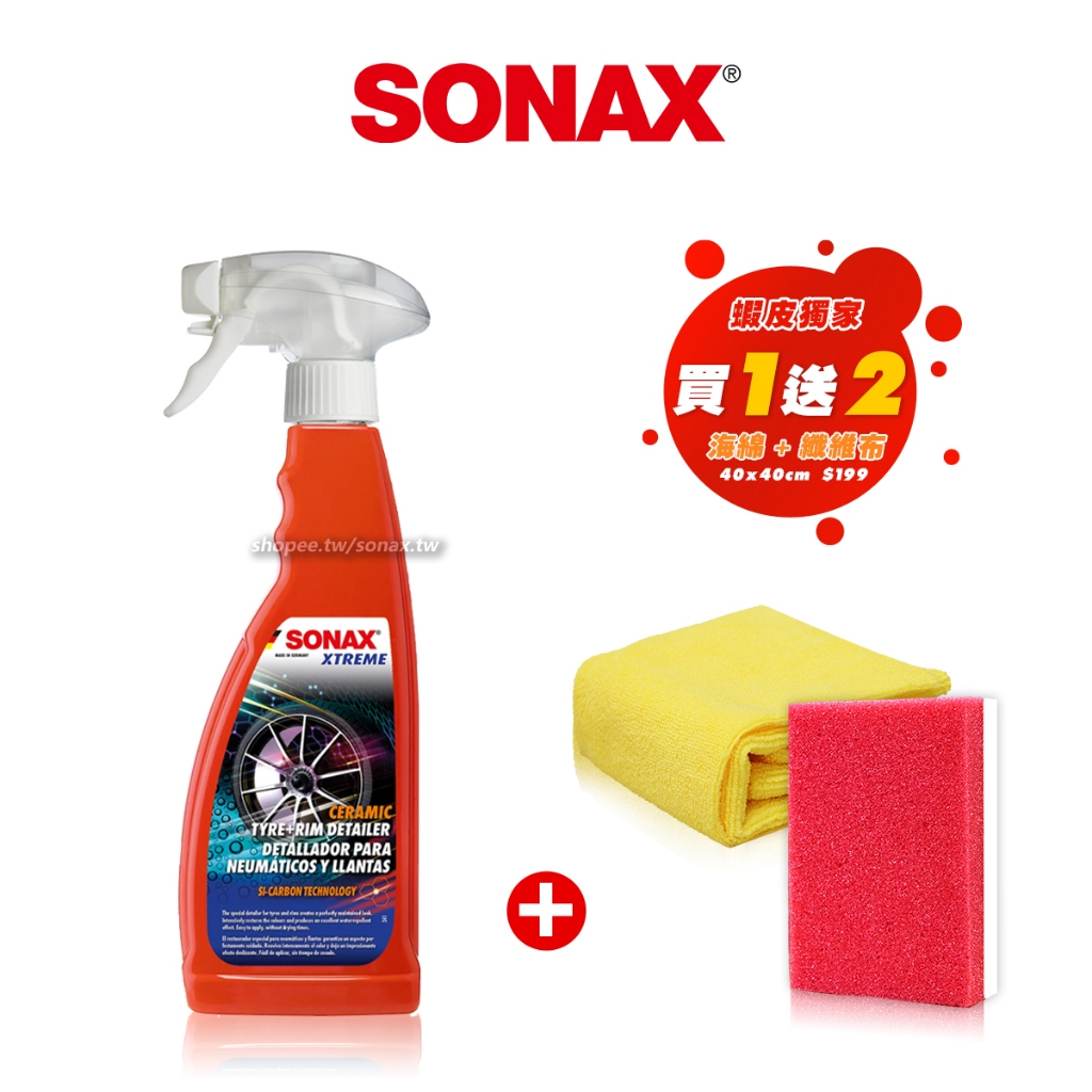 SONAX 輪胎鋼圈護膜 輪胎護膜 / 消光撥水 / 減緩輪胎氧化褪色 / 輪胎鋼圈護理單瓶 贈 極柔纖維布+握柄海綿|直播優惠下單區|限時特賣Tire & Wheel CareSONAX 歐洲第一汽車鍍膜 中性洗車藥劑 棕櫚蠟 洗車精 汽車美容 台灣總代理