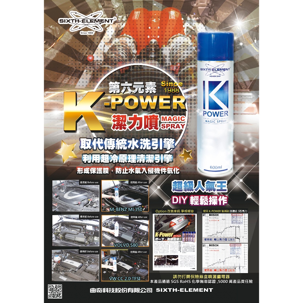 【第六元素】K-POWER 潔力噴 神奇噴劑 (單品) 引擎室清潔活化【第六元素】K-POWER 潔力噴 神奇噴劑 (單品) 引擎室清潔活化Wash & WaxesSixth Element 第六元素