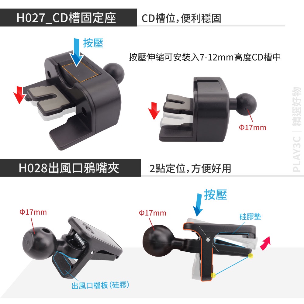 通用型底座 出風口夾 cd槽座 延長桿 17mm球頭 手機架 配件 車用手機架 底座短球頭延長桿|H029出風口鷹嘴夾|H019出風口可調夾|H021圓風口Y型掛勾座|H023出風口長桿掛勾座|H024排風口長桿掛勾座|H027_CD槽固定座|H028出風口鴉嘴夾|H039出風口旋轉夾座Phone HoldersPLAY3C創意生活館