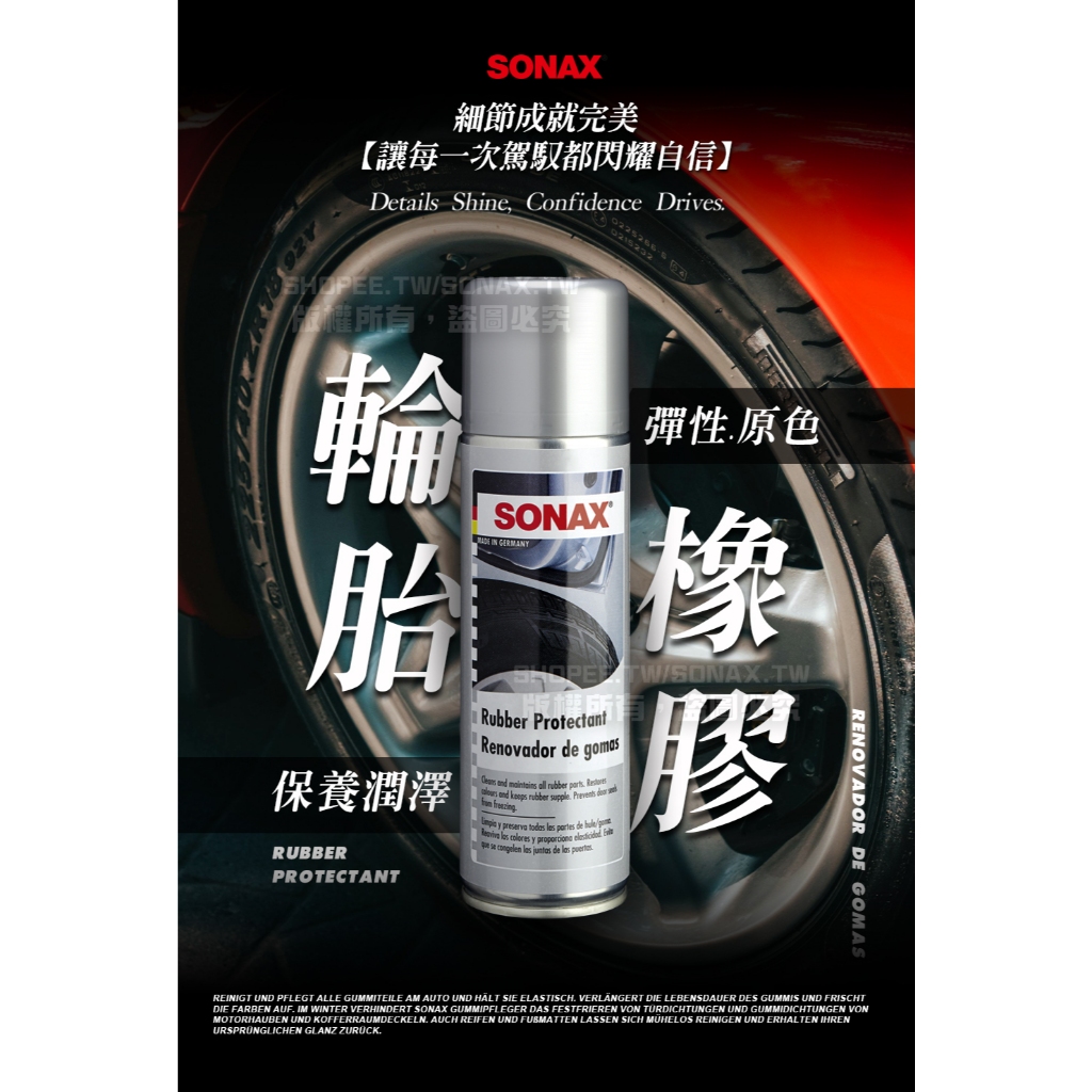 SONAX 奈米橡膠噴霧 / 保持彈性 / 延長壽命 / 恢復原有色澤 / ( 胎壁、橡膠 ) 橡膠輪胎保養限時特賣|輪胎保養劑 送 擦拭海綿|限時優惠Tire & Wheel CareSONAX 歐洲第一汽車鍍膜 中性洗車藥劑 棕櫚蠟 洗車精 汽車美容 台灣總代理