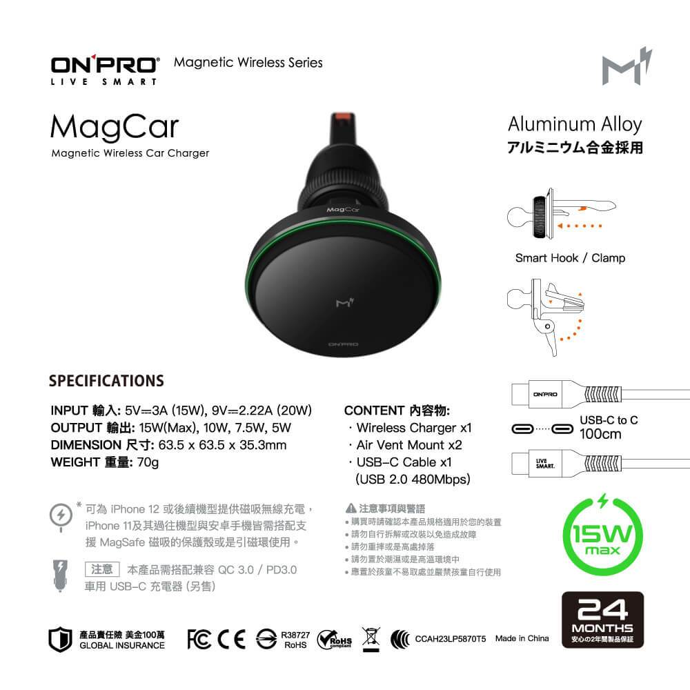 ONPRO MagCar 車用磁吸充電器 磁吸充電車架 車用無線充電盤手機架ONPRO MagCar 車用磁吸充電器 磁吸充電車架 車用無線充電盤手機架USB Chargers, FM & Bluetooth TransmittersONPRO超急速充電 官方旗艦館