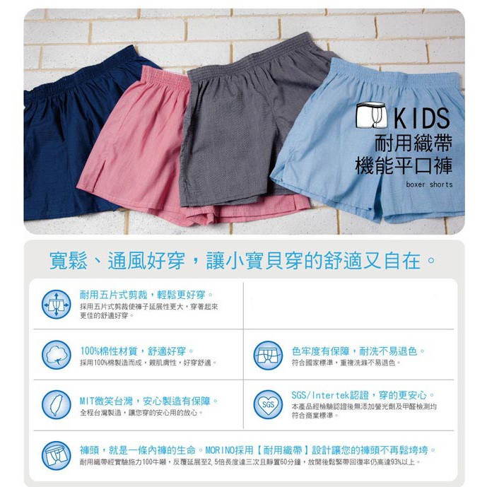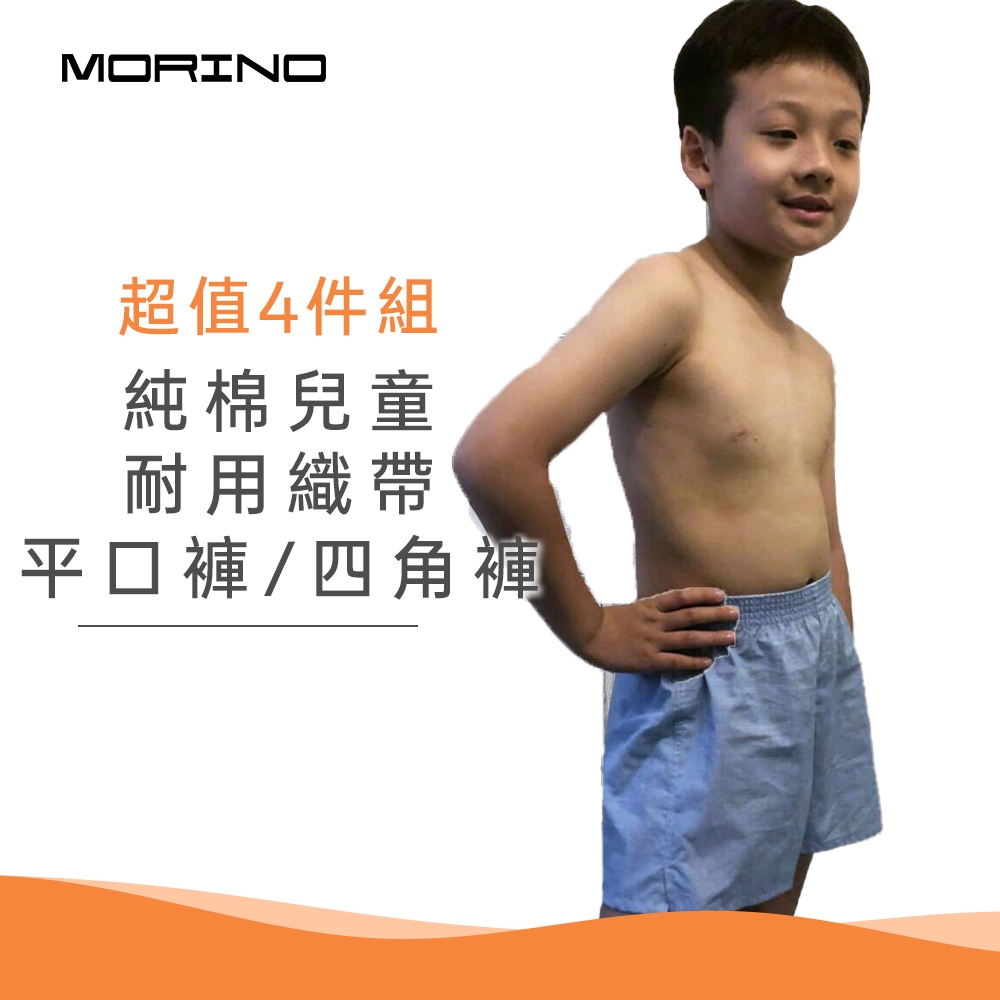• 【MORINO】(4件組)純棉兒童耐用織帶平口褲/四角褲/家居褲 MO1101
