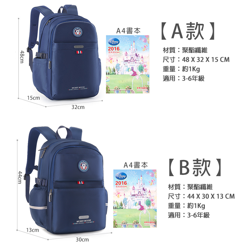 【STAR BABY】迪士尼 米奇時尚素面大容量 輕量 護脊 小學生書包 3-6年級適用B款-黑色|A款-藍色|A款-黑色|B款-藍色Bags & LuggageSTAR BABY 官方直營店