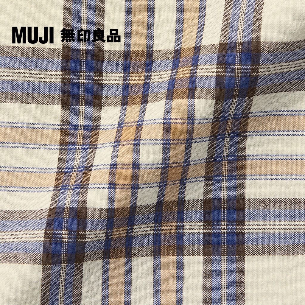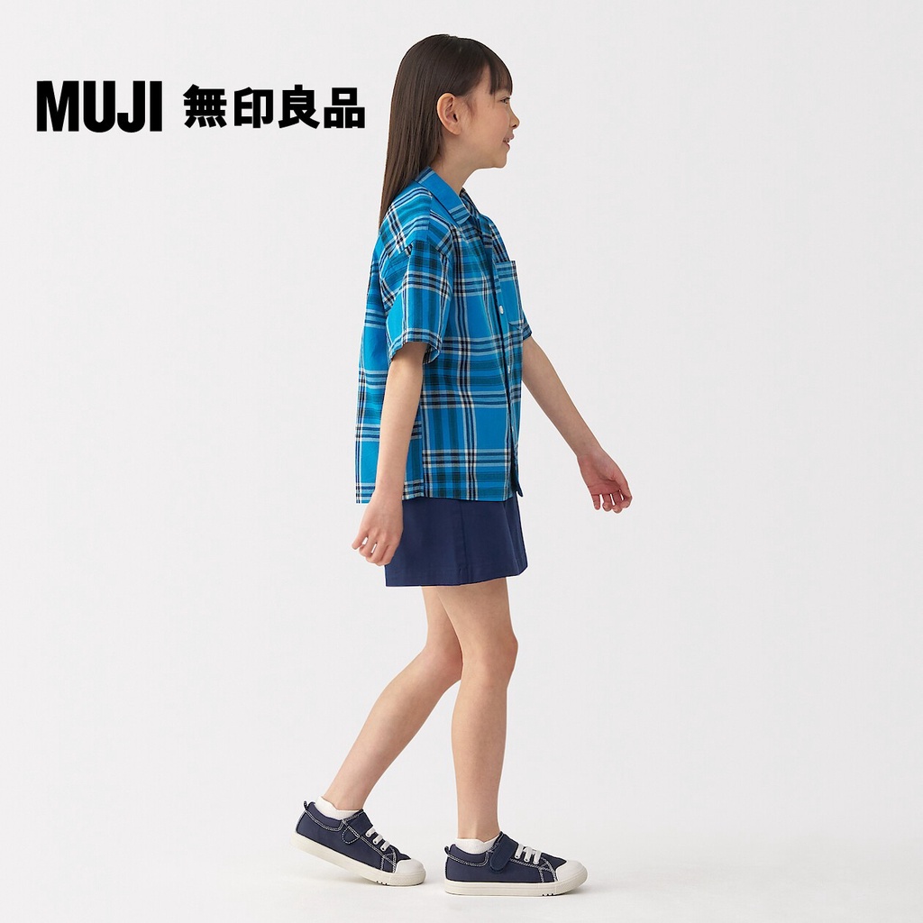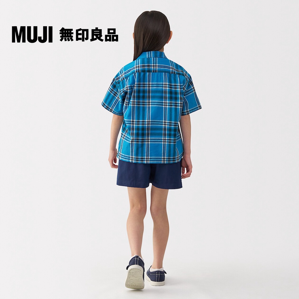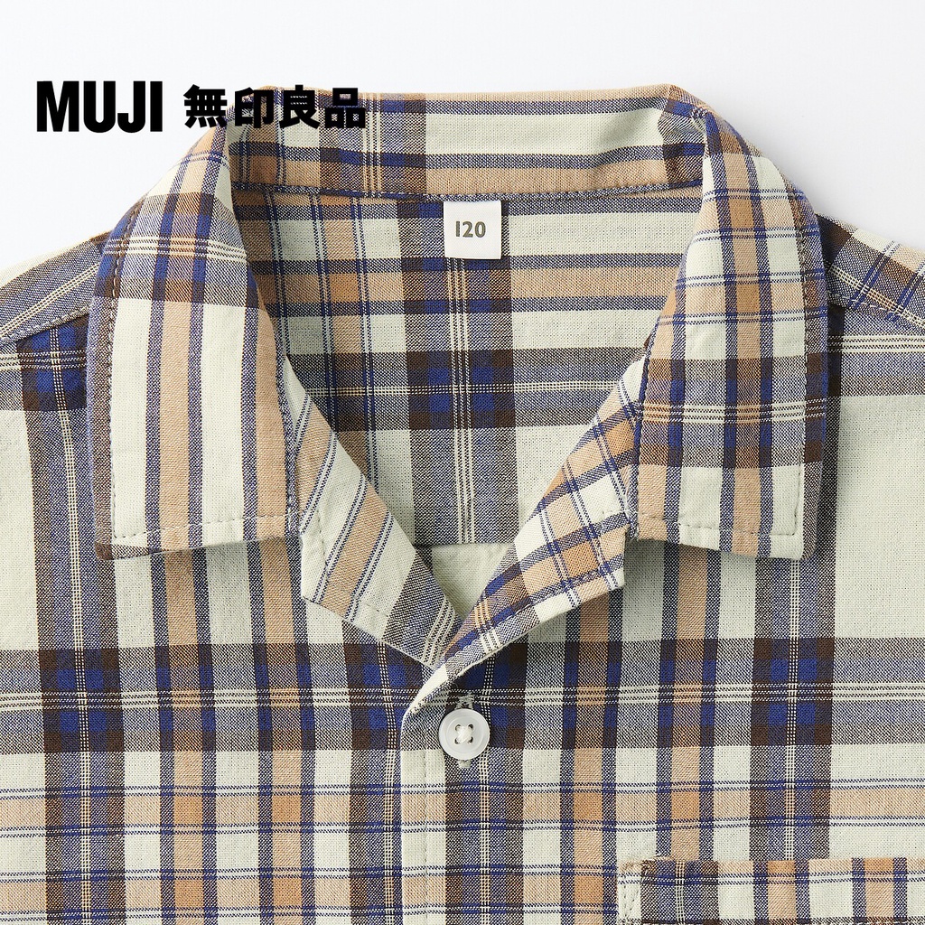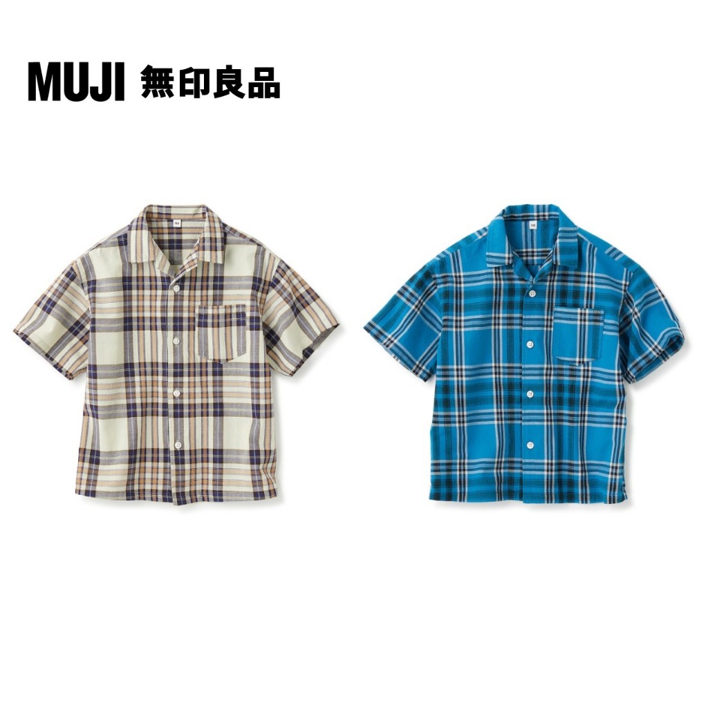 • 【MUJI 無印良品】兒童馬杜拉斯格紋開領短袖襯衫