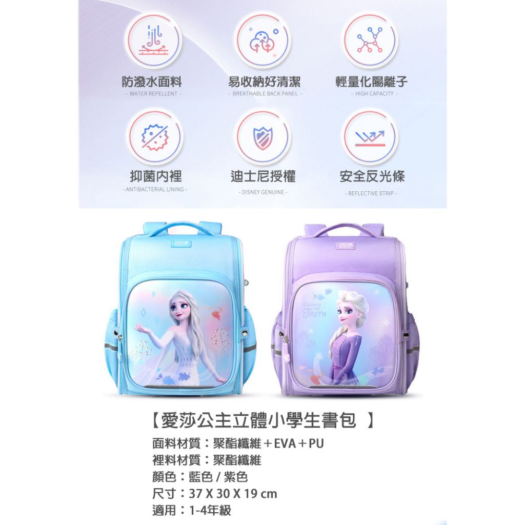 【STAR BABY】迪士尼 愛莎公主系列 護脊 防潑水 大容量 小學生書包 1-4年級適用(平輸品)藍色|紫色Bags & LuggageSTAR BABY 官方直營店