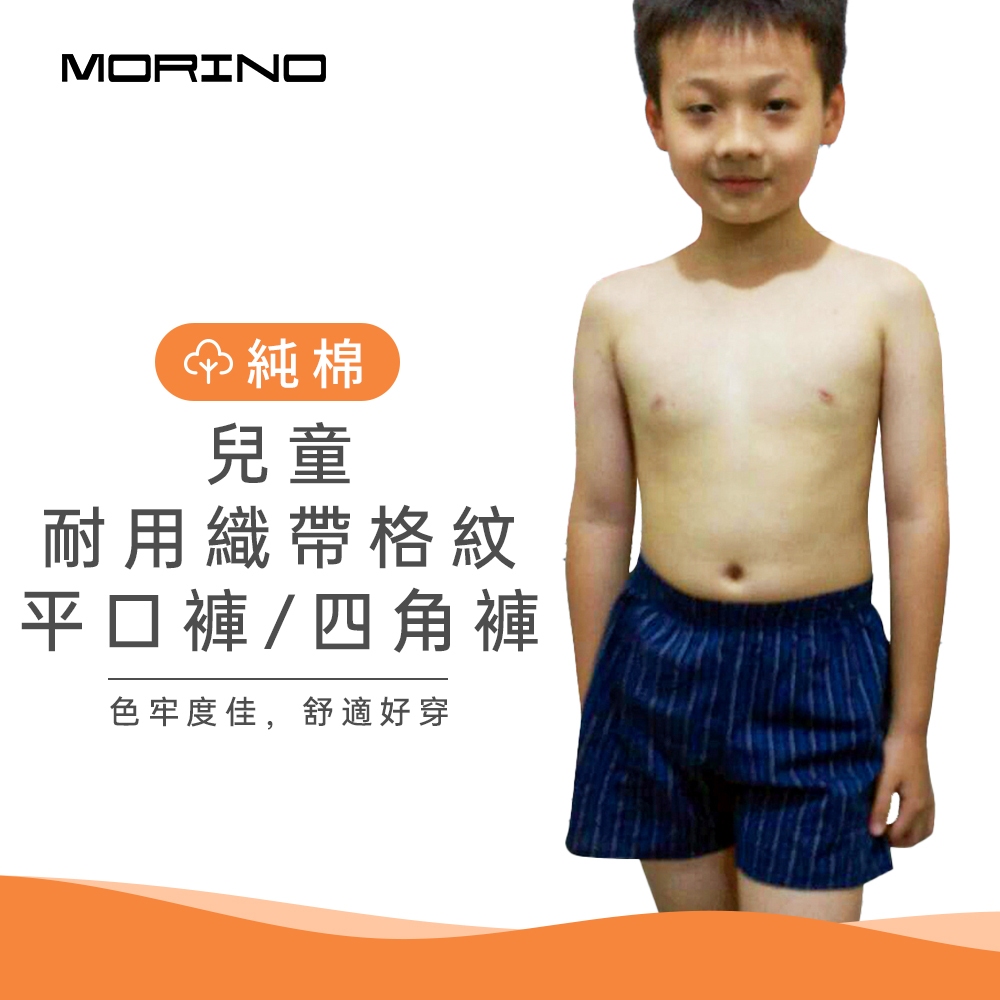 【MORINO】純棉兒童耐用織帶格紋平口褲/四角褲/家居褲_深藍條紋 MO1102M 深藍條紋|L 深藍條紋Underwear & InnerwearMORINO摩力諾 時尚機能旗艦館 男女童內著