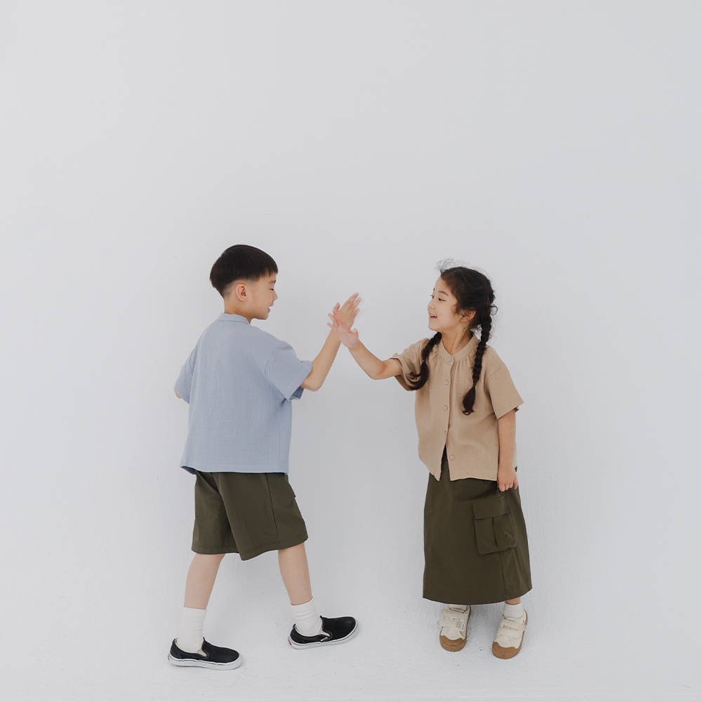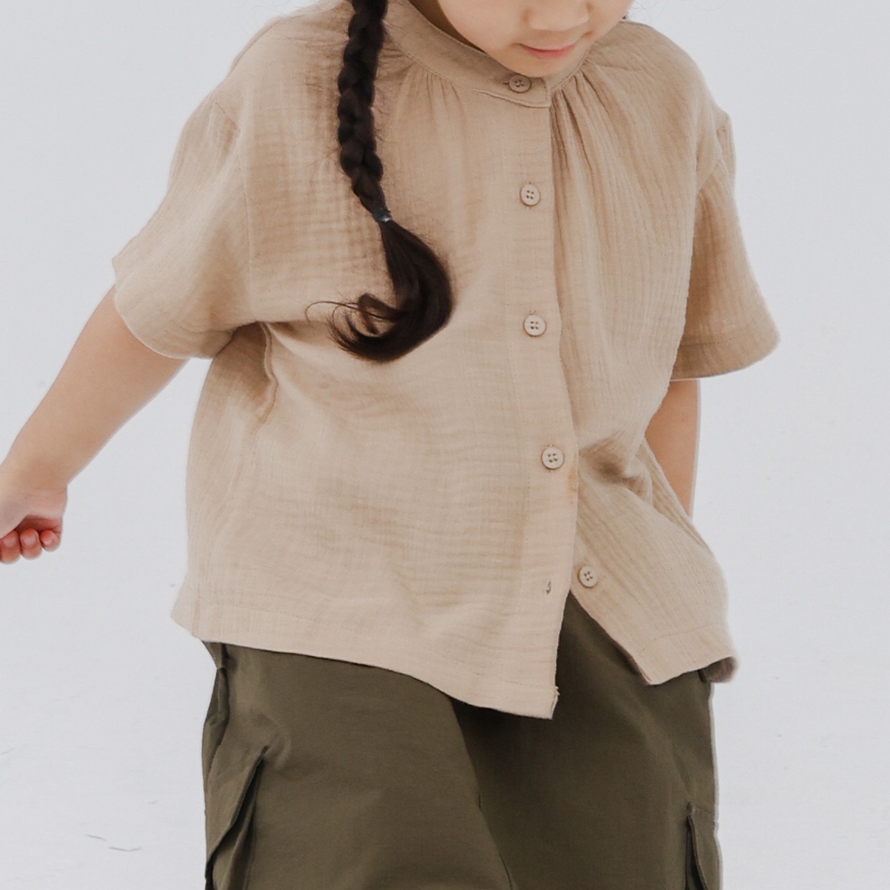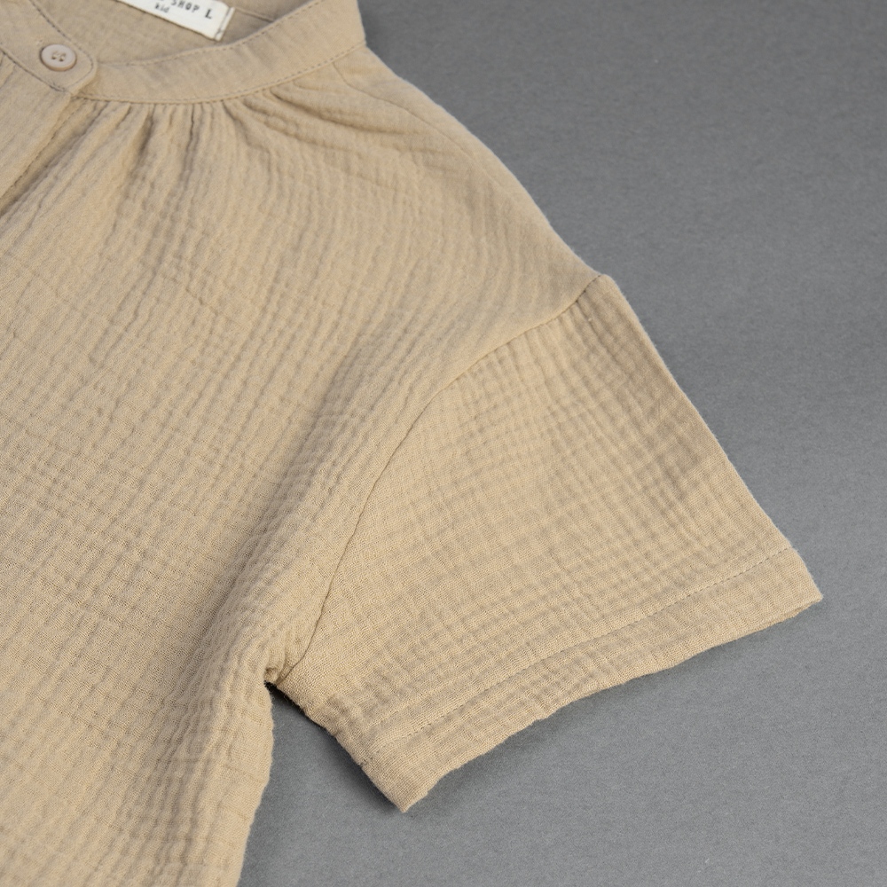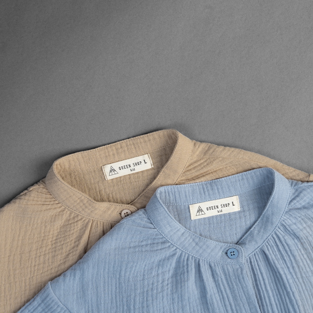QUEENSHOP_ S 短袖 童裝 立體格紋中山領襯衫 兩色售 M-XL 現+預 【01025569】藍M|藍L|藍XL|卡其M|卡其L|卡其XLTopsQUEENSHOP