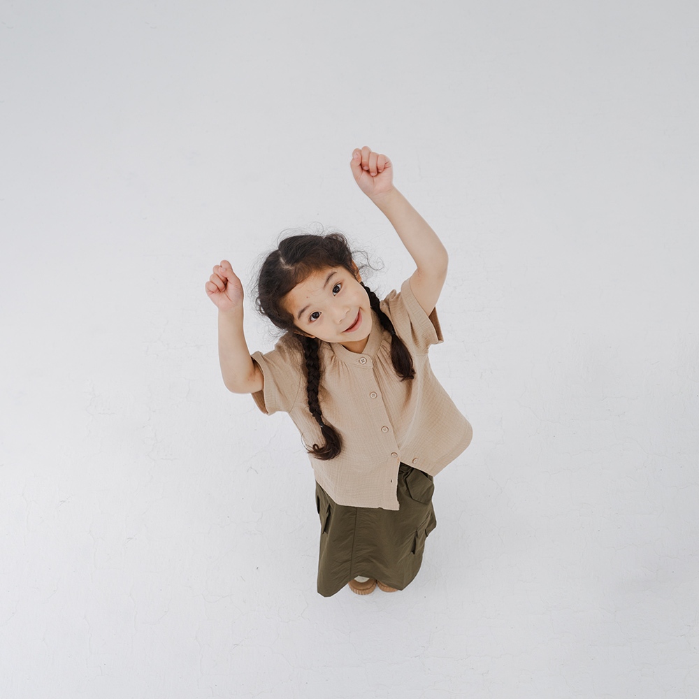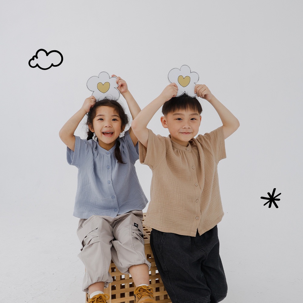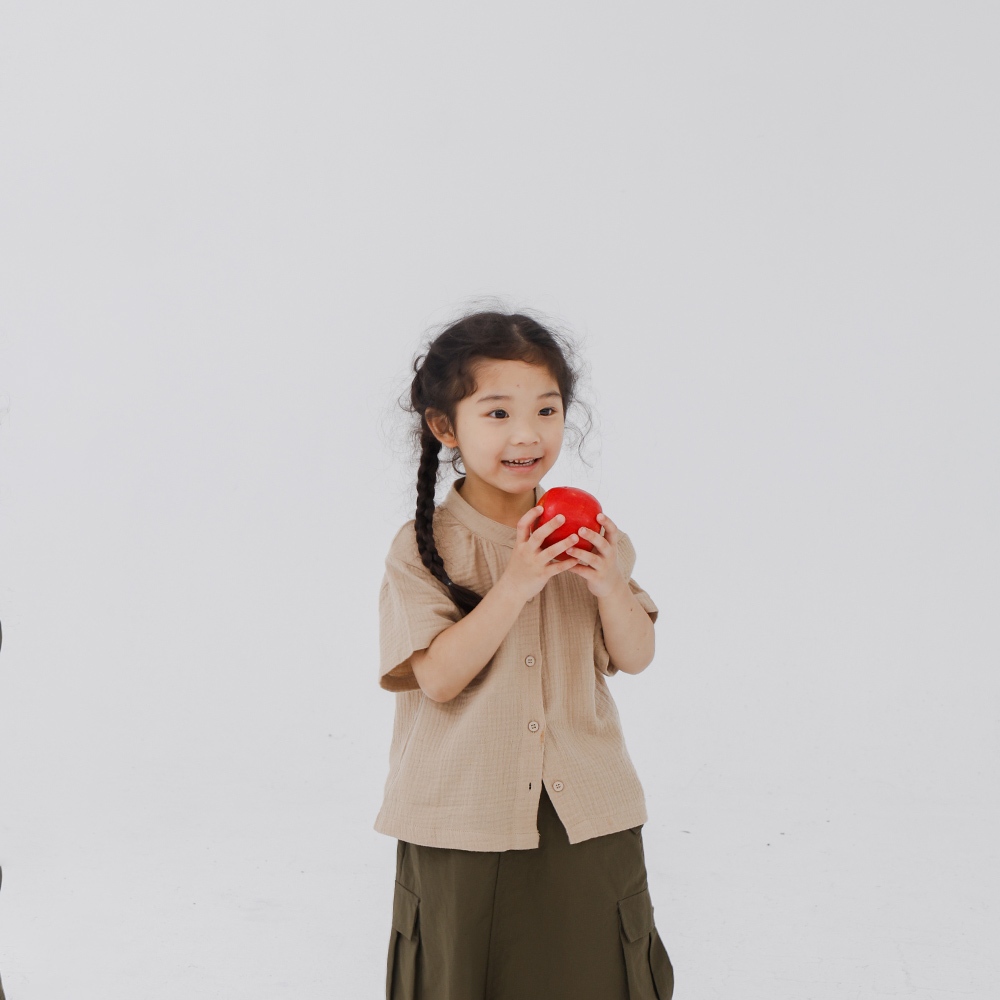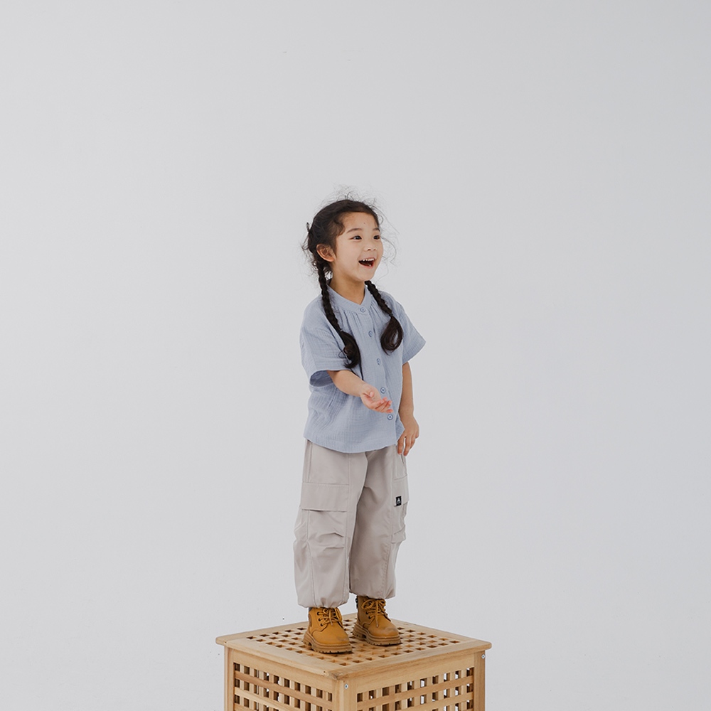 QUEENSHOP_ S 短袖 童裝 立體格紋中山領襯衫 兩色售 M-XL 現+預 【01025569】藍M|藍L|藍XL|卡其M|卡其L|卡其XLTopsQUEENSHOP