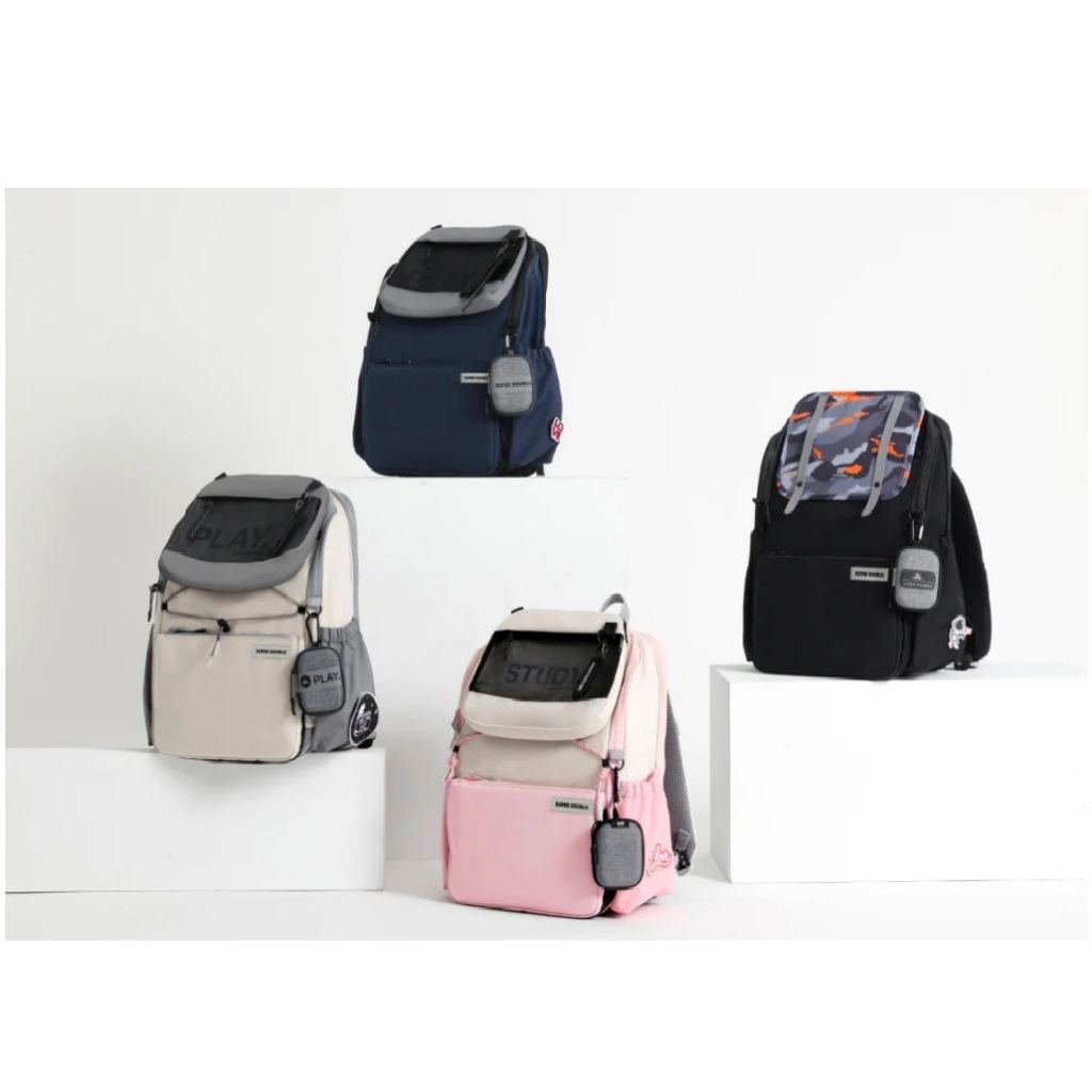 【Super Double】輕輕背護脊書包 PLUS潮流探險組 三色可選(兒童書包/護脊/輕量/擴充容量/台灣製)米灰色|粉色|藍色Bags & LuggageSuper Double 快卡背包