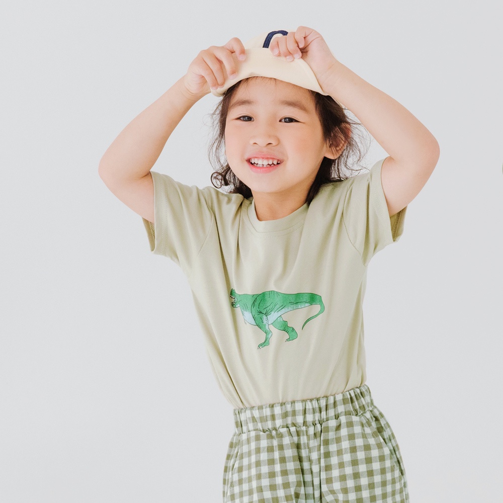 OB嚴選 童趣恐龍印花短袖上衣 《QA1516》童裝/現貨杏,110|杏,120|灰綠,100|灰綠,110|灰綠,120|杏,100TopsOB嚴選官方旗艦店