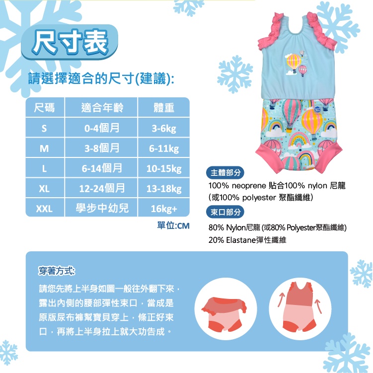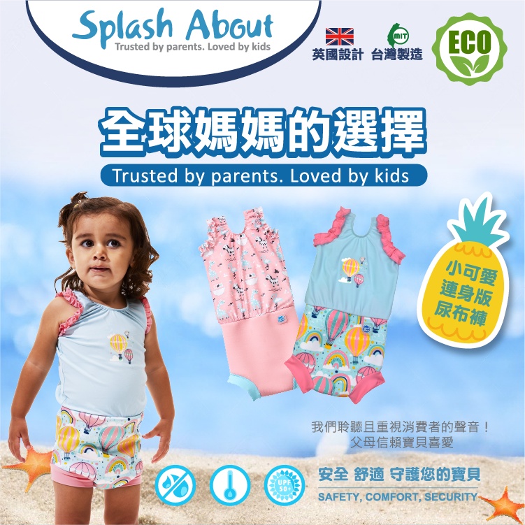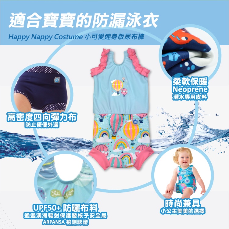 《Splash About 潑寶》Happy Nappy Costume 小女孩連身版尿布褲 – 彩虹熱氣球L (10-15kg)|XXL (16-20kg)|XL (13-18kg)SwimwearSplash About 潑寶 官方旗艦店