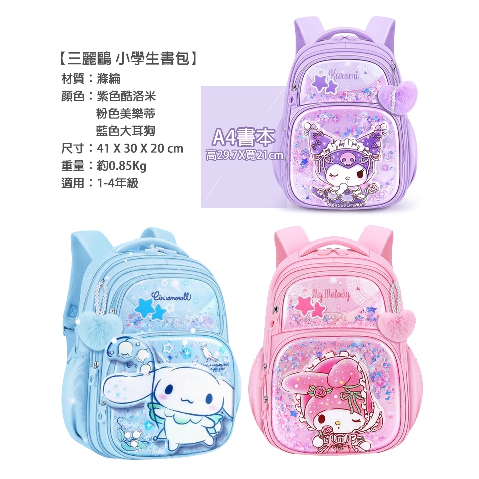【STAR BABY】三麗鷗 酷洛米/美樂蒂/大耳狗 亮片星星流沙 護脊 防潑水 大容量 小學生書包 1-4年級適用粉色美樂蒂|藍色大耳狗|紫色酷洛米Bags & LuggageSTAR BABY 官方直營店