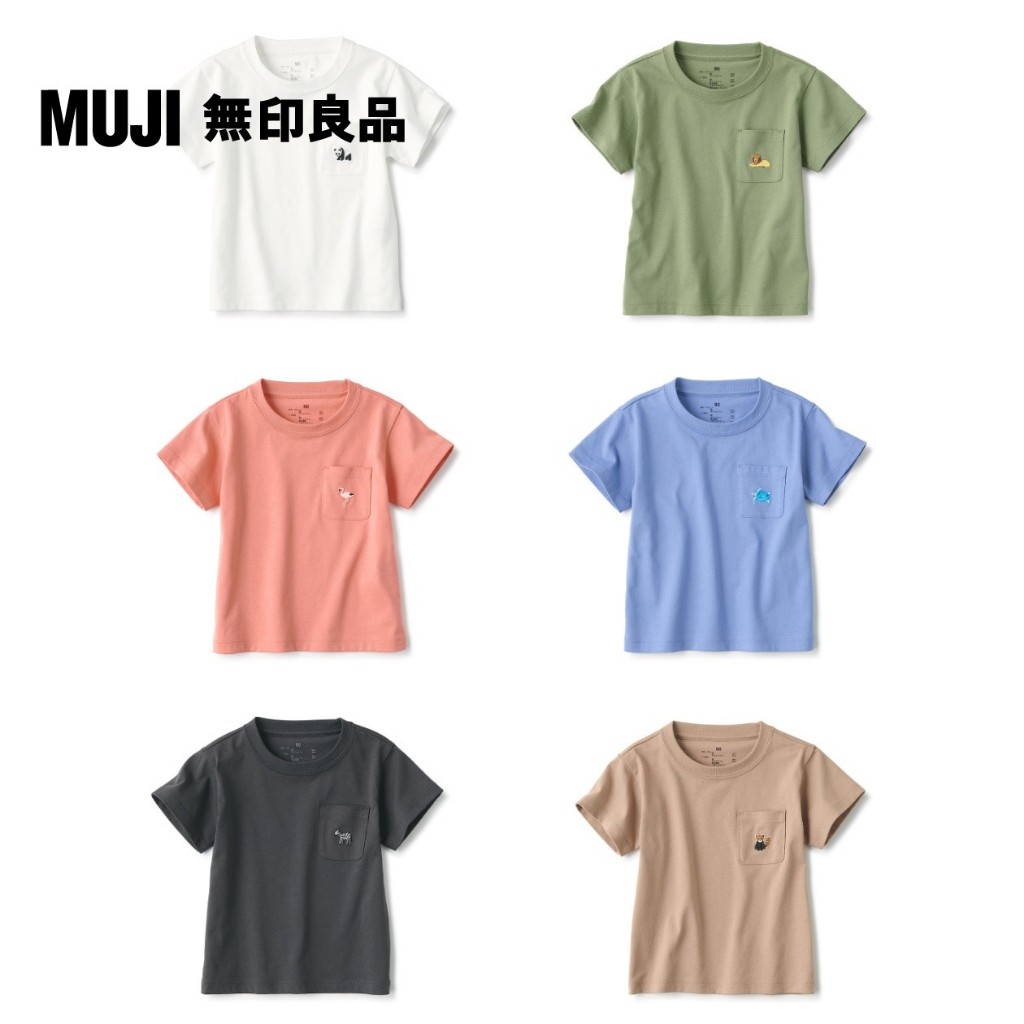 【MUJI 無印良品】幼兒容易穿脫天竺刺繡口袋短袖T恤