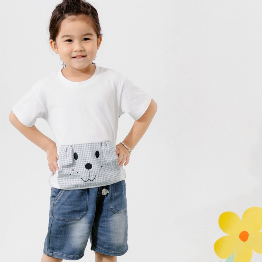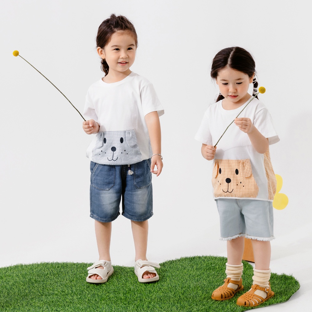 OB嚴選 可愛純棉立體狗狗耳朵口袋拼格造型上衣 《QA1704》童裝/現貨/男女童