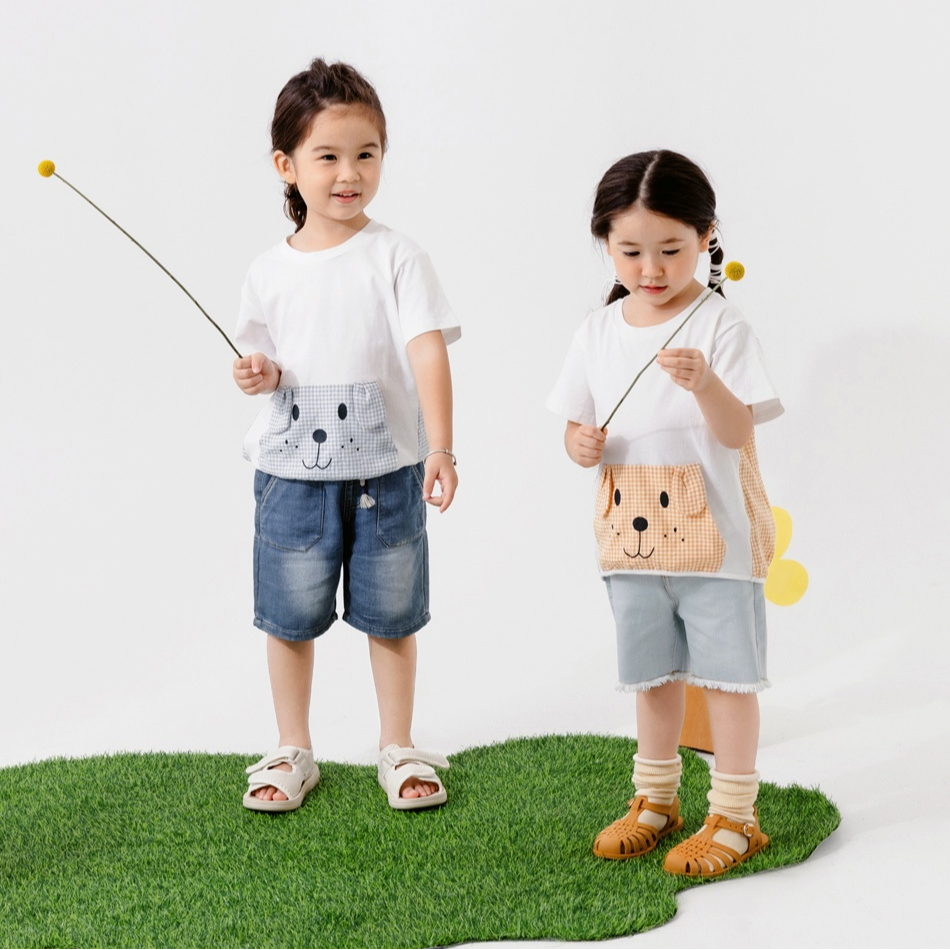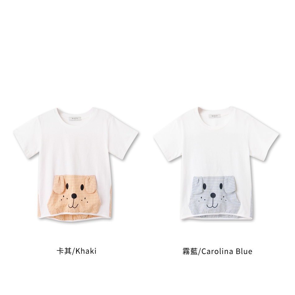 OB嚴選 可愛純棉立體狗狗耳朵口袋拼格造型上衣 《QA1704》童裝/現貨/男女童卡其,100|卡其,130|霧藍,110|霧藍,130|霧藍,120|霧藍,90|卡其,110|卡其,120|卡其,90|霧藍,100TopsOB嚴選官方旗艦店