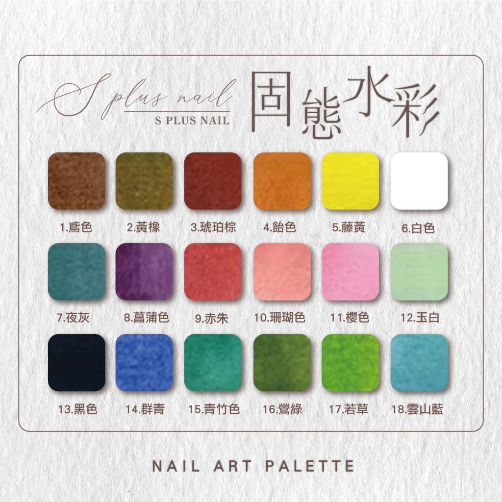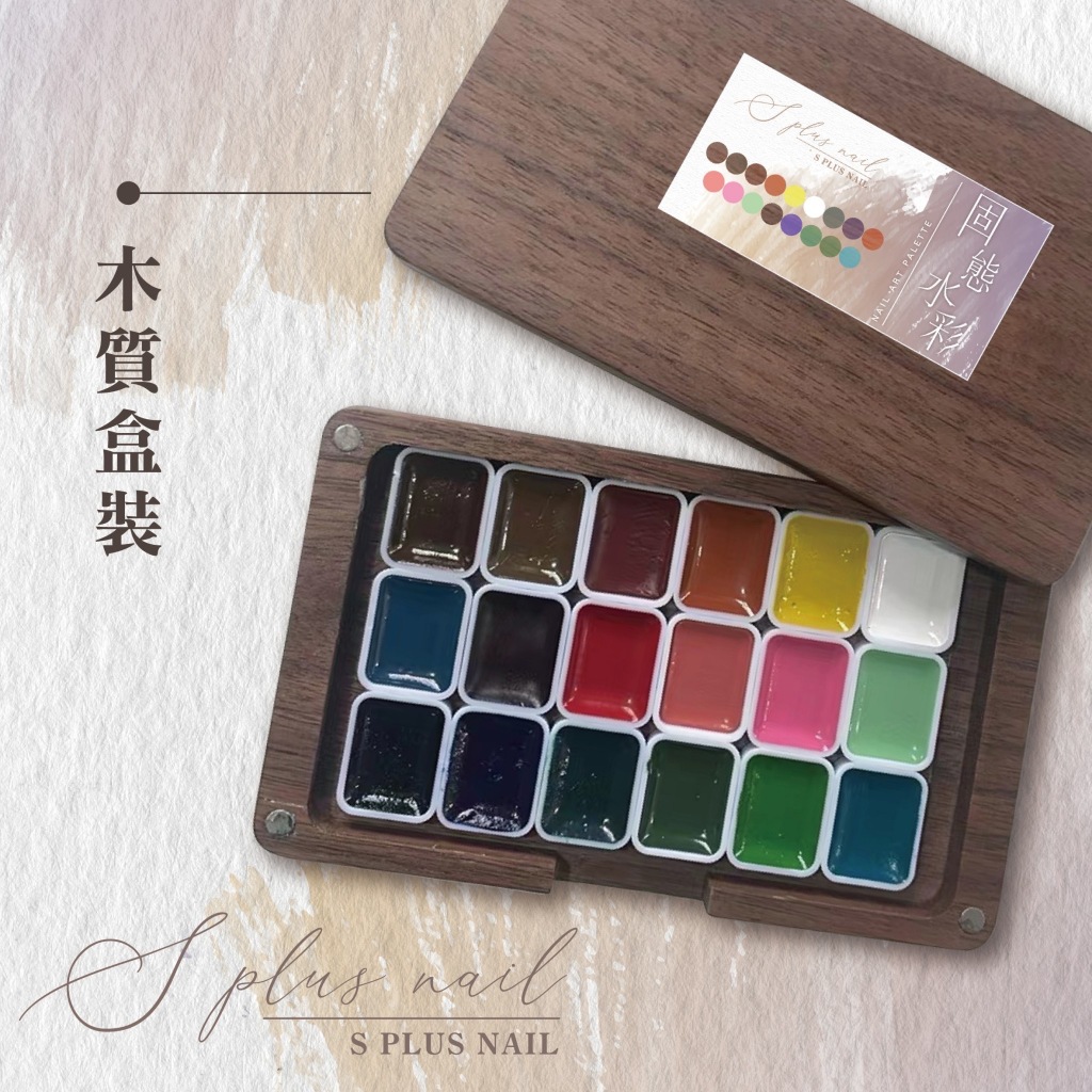 【S+ NAIL】18色固態純色水彩 彩繪固態水彩 木盒 美甲水彩 美甲水彩顏料 水彩筆 S+18色 木盒水彩Nail CareSEE SEE NAIL 美甲彩繪筆的專家