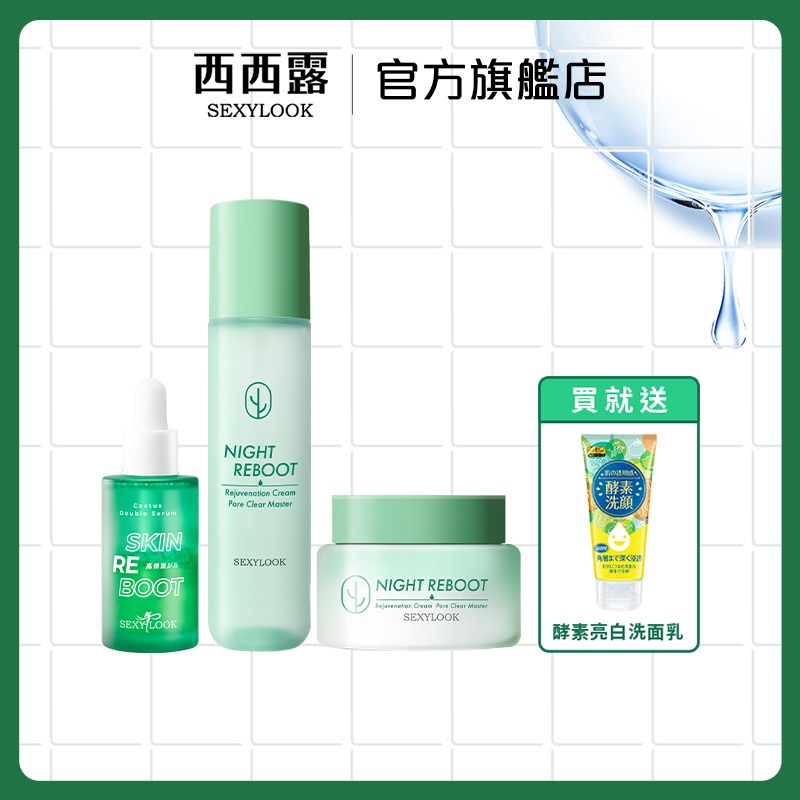【SEXYLOOK 西西露】仙人掌夜光代謝霜50ml+夜光代謝水150ml+仙人掌雙精萃30mlx1+酵素亮白洗面乳代謝霜+代謝水+雙精萃 贈酵素亮白洗面乳SEXYLOOK 西西露官方旗艦店