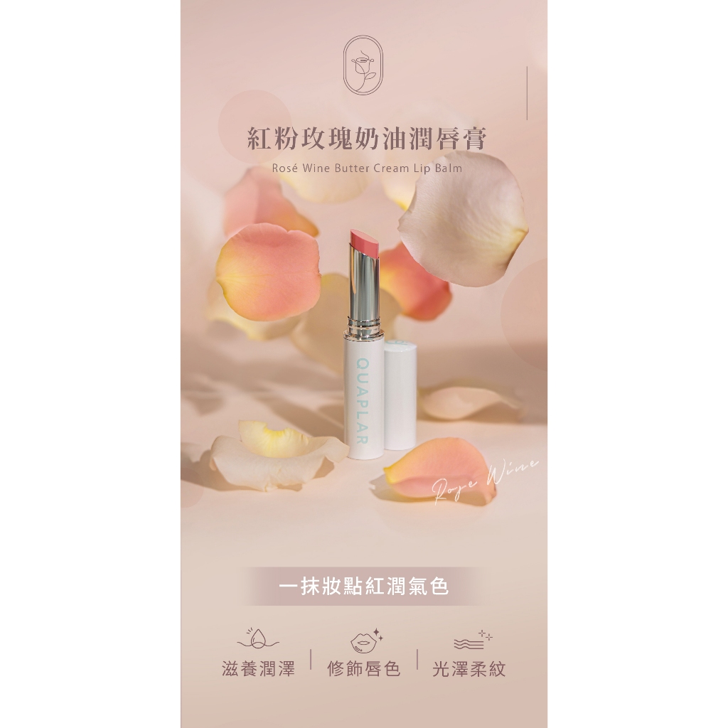 QUAPLAR 葵柏兒 紅粉玫瑰奶油潤唇膏(#01有色款) 3g|潤色護唇膏 修護柔紋 雙重滋潤果油QUAPLAR 葵柏兒 紅粉玫瑰奶油潤唇膏(#01有色款) 3g|潤色護唇膏 修護柔紋 雙重滋潤果油Lip TreatmentQUAPLAR葵柏兒 官方旗艦店