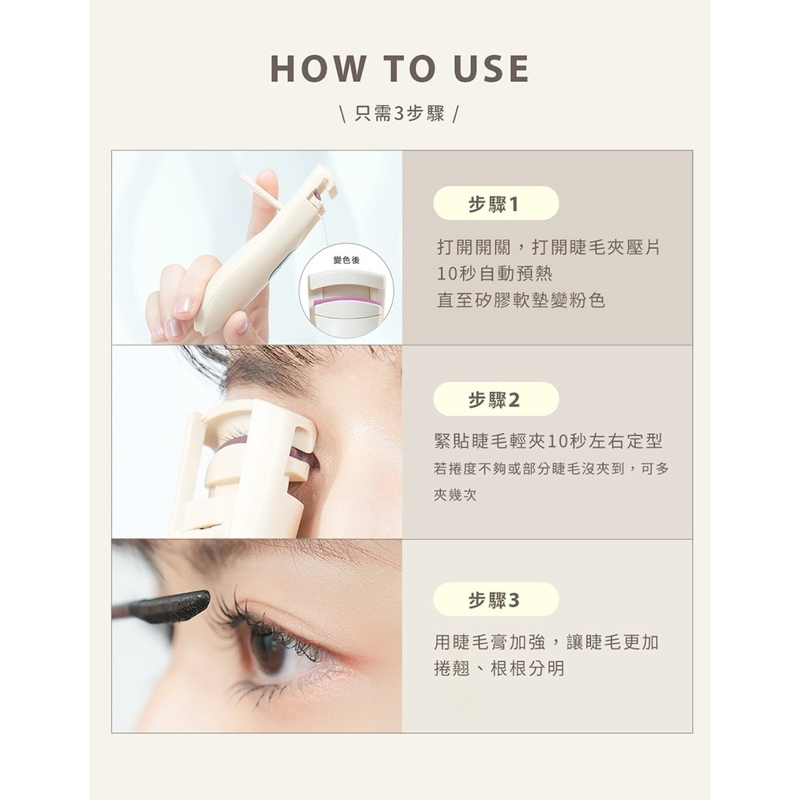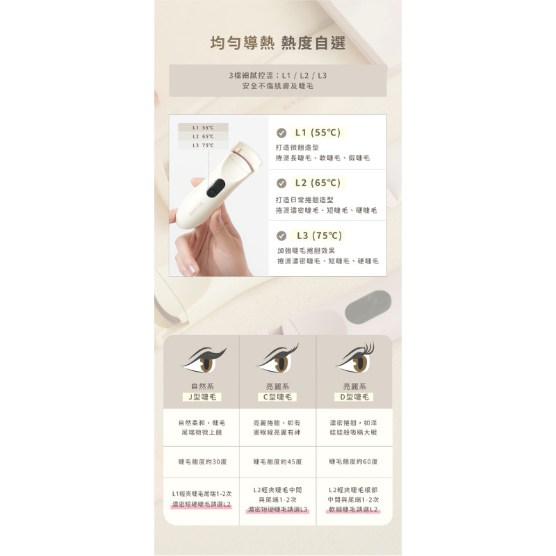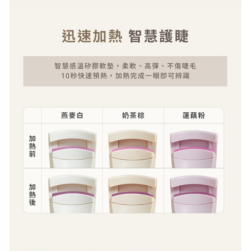 ROOMMI|LashUp 捲翹電熱睫毛夾 快速預熱 輕便好攜帶 3檔細膩控溫 長效定型 韓系造型燕麥白|奶茶棕|蓮藕粉Makeup Accessoriesroommi tw