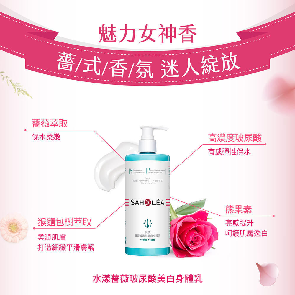 【SAHOLEA森歐黎漾】水漾薔薇系列 玻尿酸美白身體乳兩入組(480mlX2)兩入Body Cream, Lotion & ButterSAHOLEA森歐黎漾 官方旗艦館