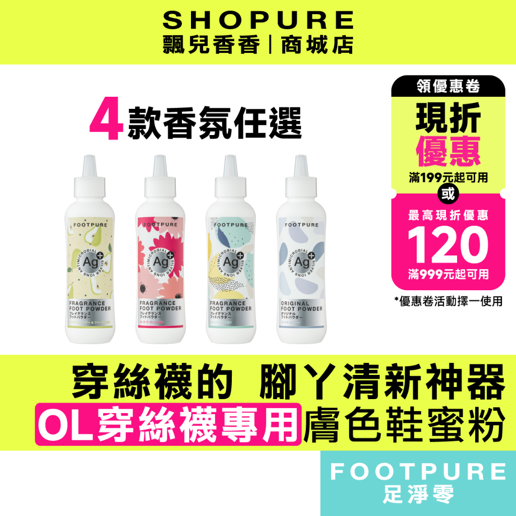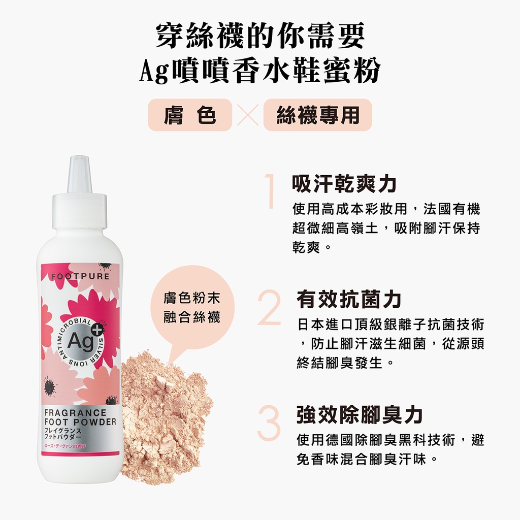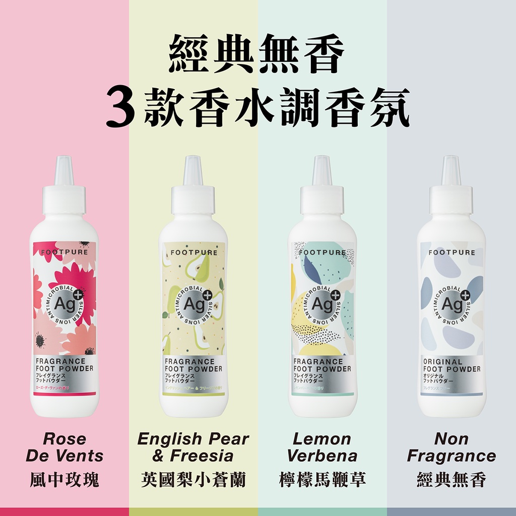 【SHOPURE飄兒香香】FOOTPURE Ag+專利銀離子 噴噴香水鞋蜜粉(膚色絲襪專用)絲襪除臭 鞋子除臭 鞋粉風中玫瑰|英國梨小蒼蘭|檸檬馬鞭草|無香味|備用一Foot CareSHOPURE 飄兒小舖-美妝生活雜貨鋪