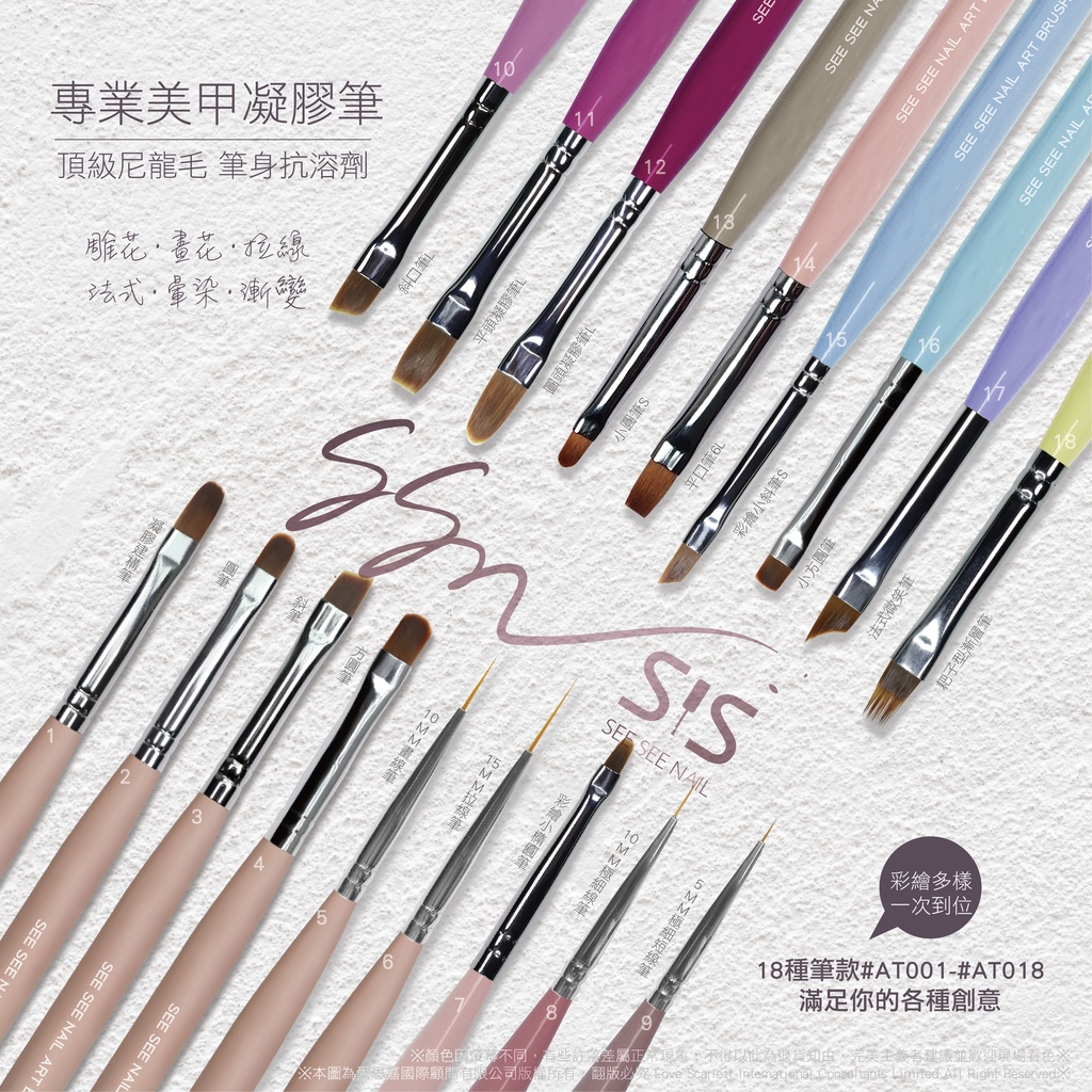 【SEE SEE NAIL】美甲彩繪筆AT013-AT018 單支 圓筆 線筆 建構筆 斜筆 方圓筆 凝膠筆