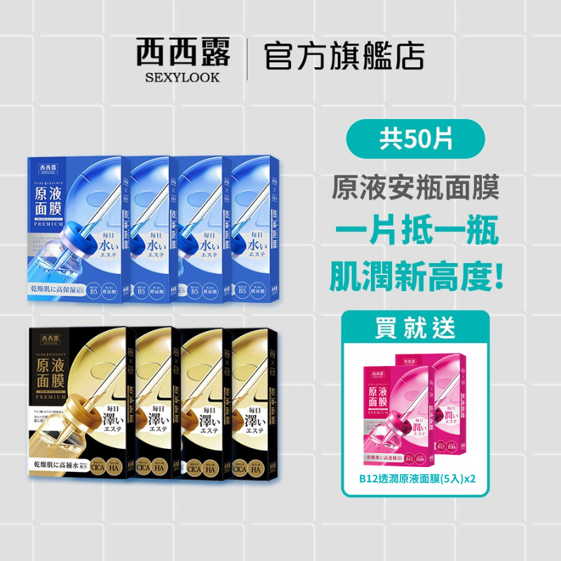【SEXYLOOK 西西露】B5保濕原液面膜(5片/盒)X4+CICA修護原液黑面膜(5片/盒)X4CICA修護x4盒+B5保濕原液x4盒Face Mask & PacksSEXYLOOK 西西露官方旗艦店