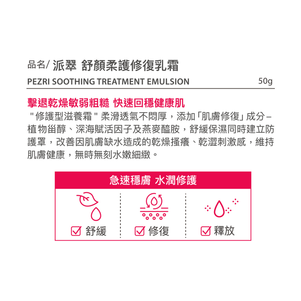 【PEZRI派翠】舒顏柔護修復乳霜50g|PEZRI派翠胜肽保養專家│寶雅同步販售中50gFacial MoisturizerPEZRI派翠官方旗艦店|胜肽保養專家