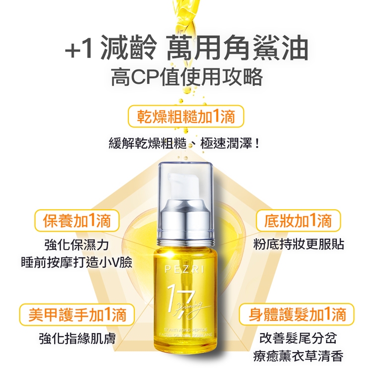 【PEZRI派翠】│角鯊油超值組合│17胜肽角鯊緊緻精華油3入組│PEZRI派翠《期間限定》30ml-3入PEZRI派翠官方旗艦店|胜肽保養專家