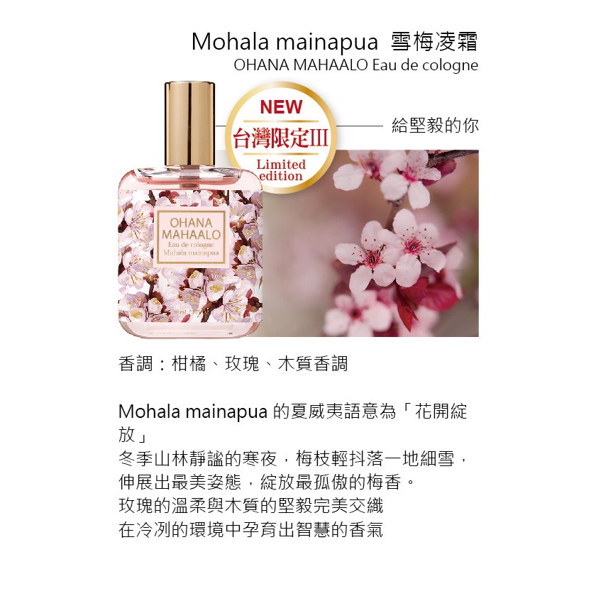 OHANA MAHAALO雪梅凌霜 輕香水30ml〈台灣限定〉【品牌代理正品】OHANA MAHAALO雪梅凌霜 輕香水30ml〈台灣限定〉【品牌代理正品】OHANA MAHAALO