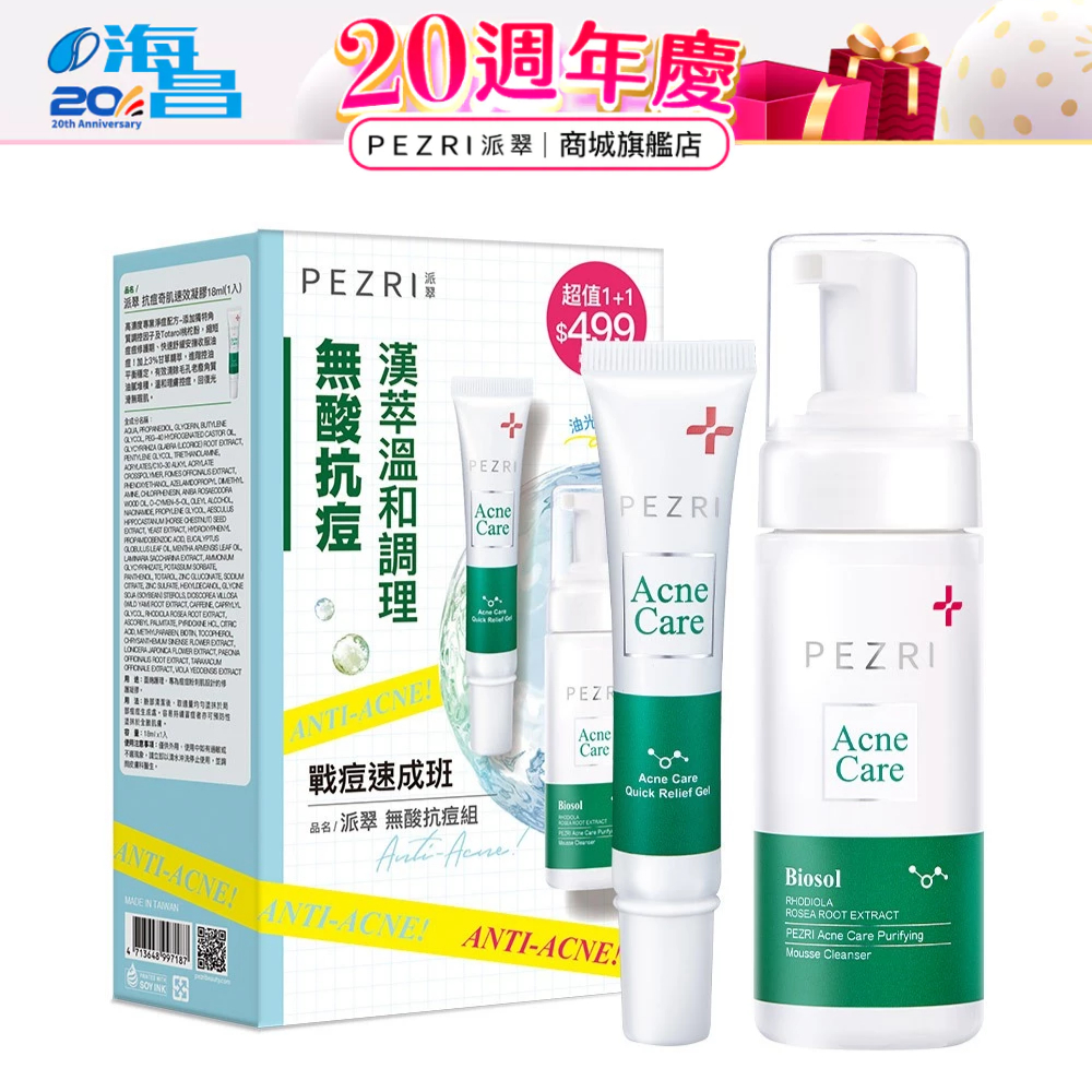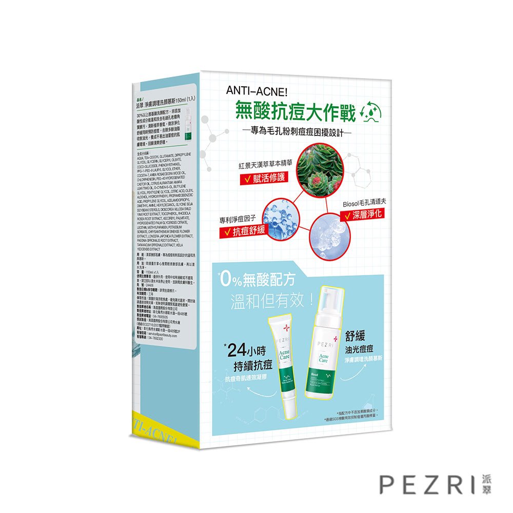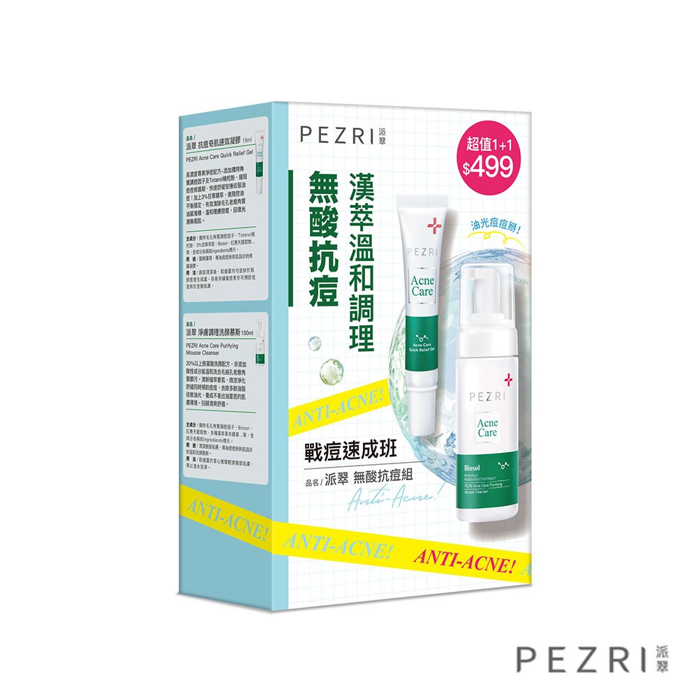 【PEZRI派翠】│油肌必備│無酸抗痘禮盒組│【盒損良品:2026.3】│專為油性肌膚設計|無酸配方|溫和保養|派翠慕斯+抗痘凝膠PEZRI派翠官方旗艦店|胜肽保養專家