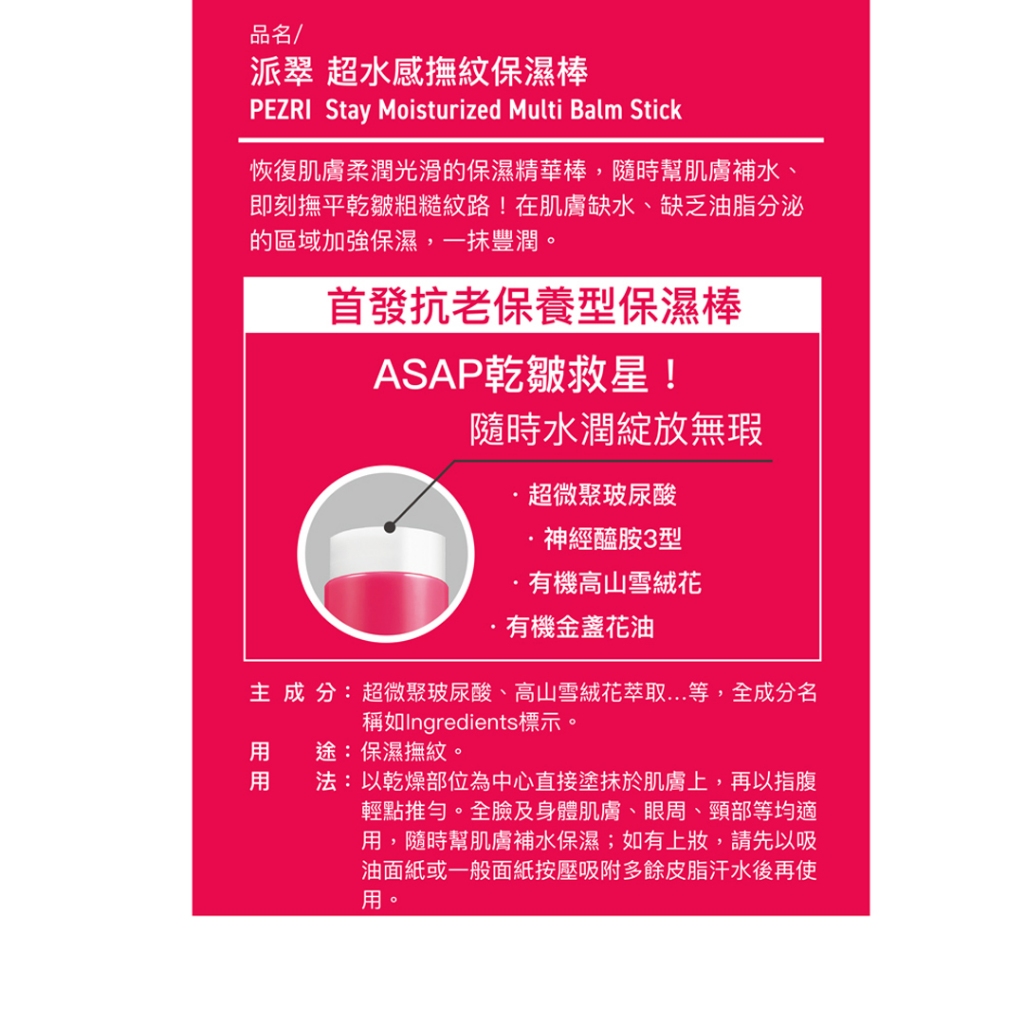 【PEZRI派翠】超水感撫紋保濕棒6.5g《盒損良品》效期至:2026年4月│ PEZRI派翠官方旗艦店1入【盒損良品/效期至2026年4月】|2入【盒損良品/效期至2026年4月】OthersPEZRI派翠官方旗艦店|胜肽保養專家