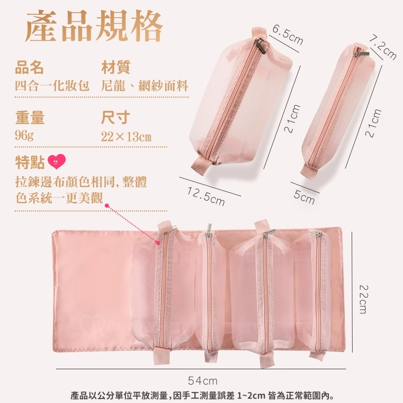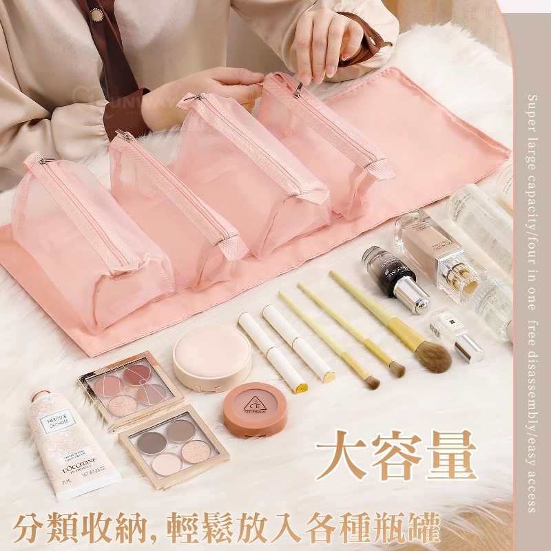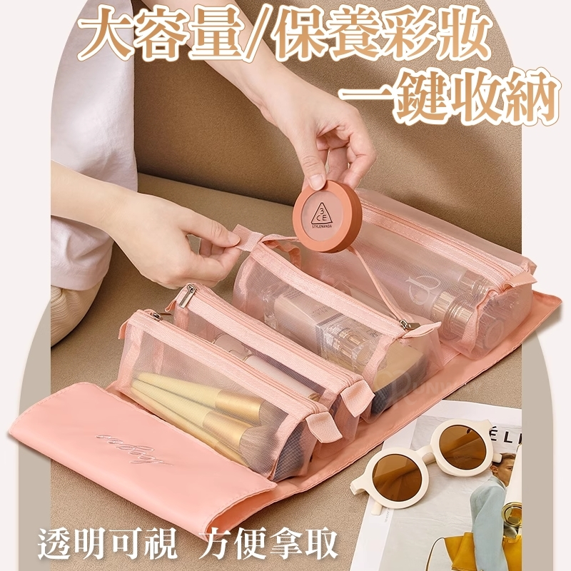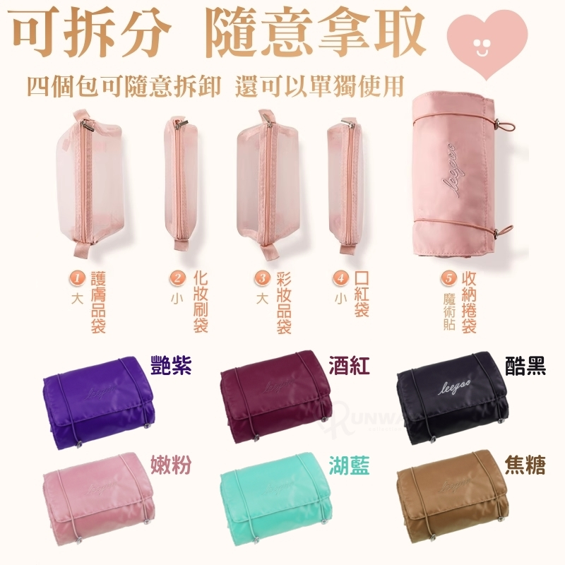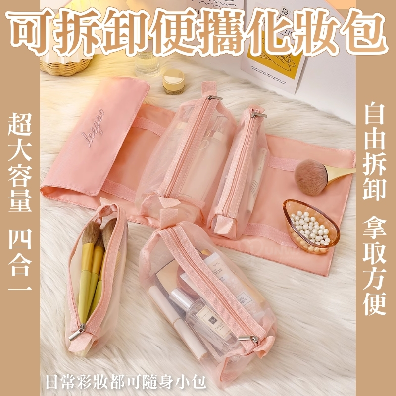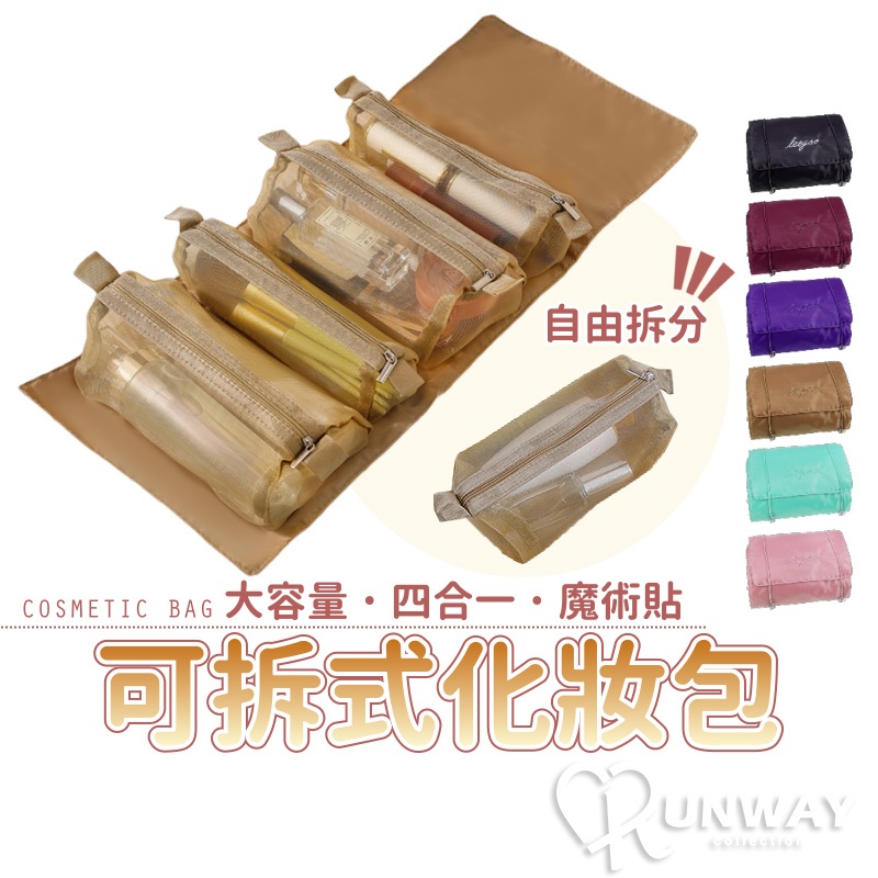 四合一化妝包 魔鬼氈化妝包 可拆式 盥洗包 魔術貼 洗漱包 化妝包 分類包 收納包 可拆卸 盥洗包 旅行收納包艷紫|嫩粉|酷黑|酒紅|湖藍|焦糖Makeup AccessoriesRunway Collection