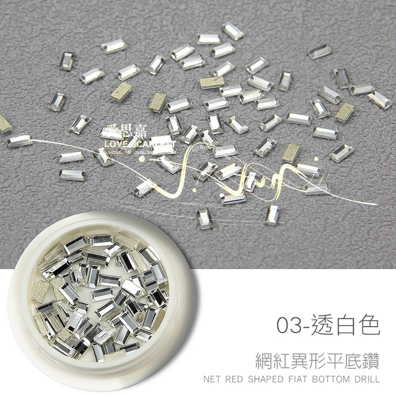 美甲網紅平底長方水晶鑽飾 美甲鑽飾 美甲材料01香檳/01621|02礦黑(透黑)01620|03透白(透明)01622|04月光(透藍)01619|05煥彩(幻彩)01623Nail CareS PLUS NAIL 官方旗鑑店